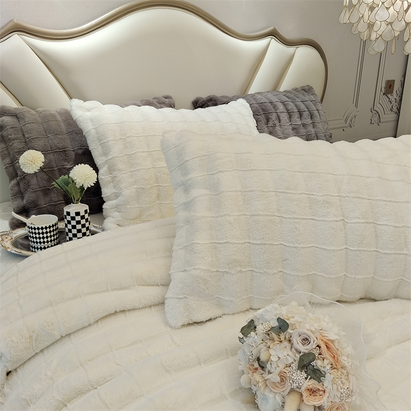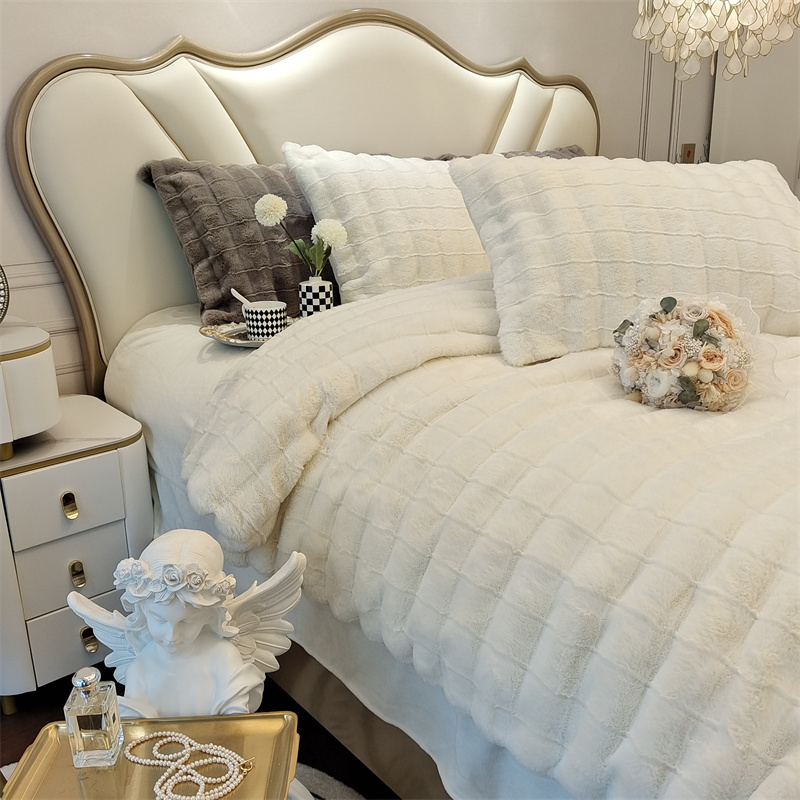 商品名称:时亿 2023新款320g獭兔毛绒绒四件套 昔可白