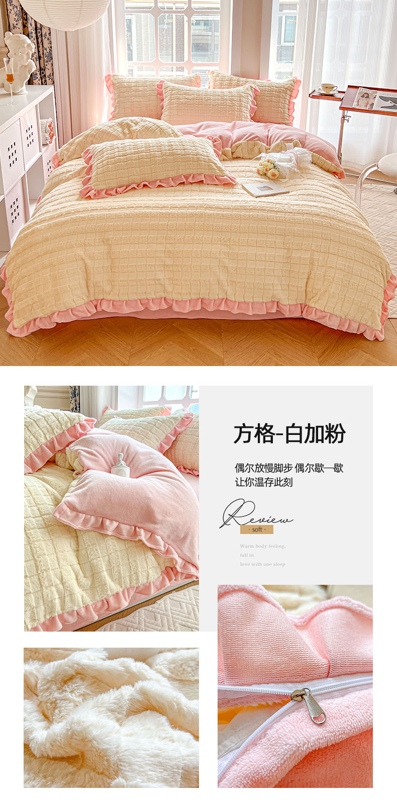 (总)米莱家纺 2025新款兔毛绒花边牛奶绒四件套,彩色圆点,繁花,粉黛,蝴蝶结,咖圆点,可爱兔,可爱熊,蔷薇