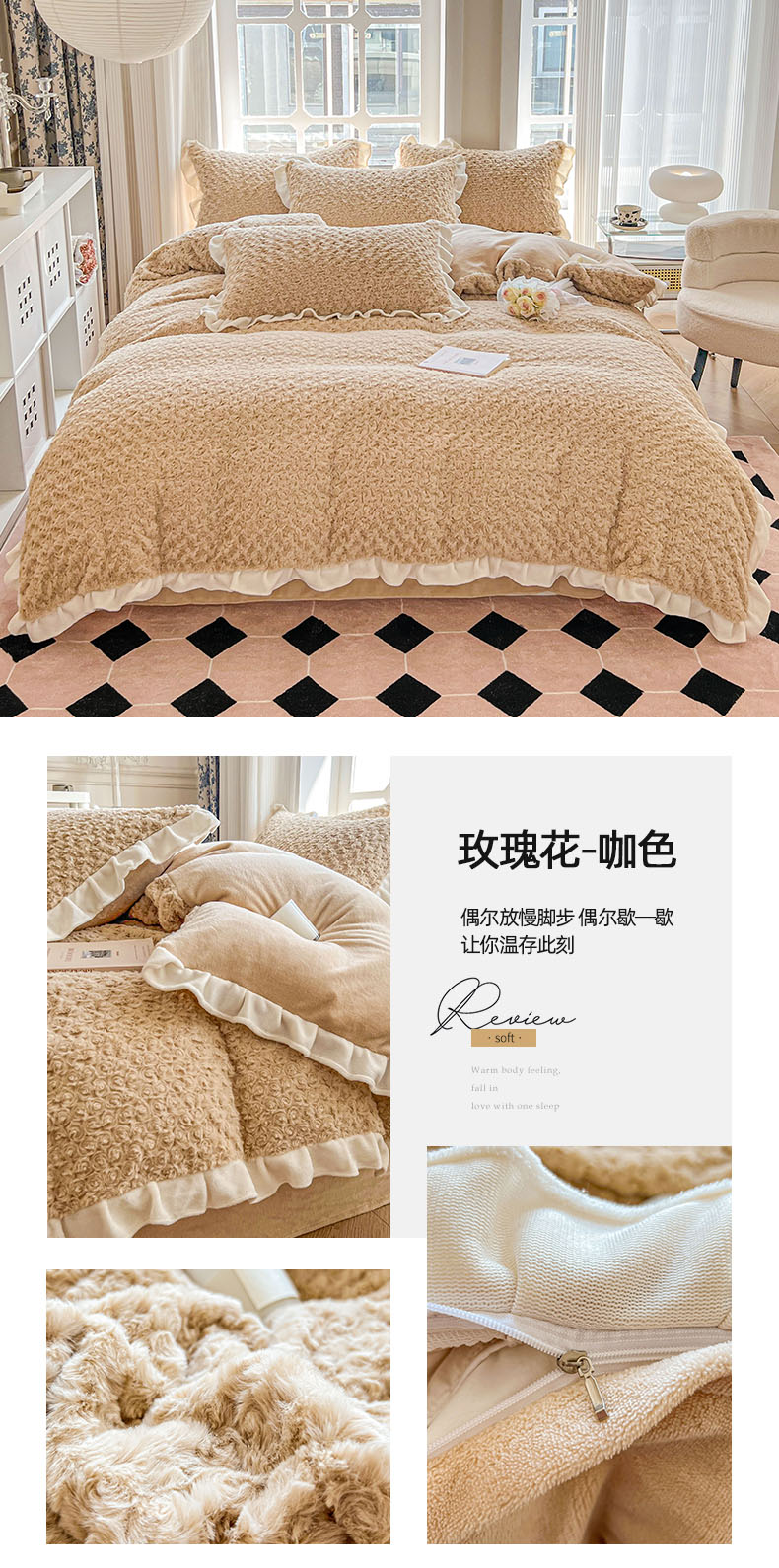 商品名称:米莱家纺 2023新款兔绒四件套 玫瑰花-咖色