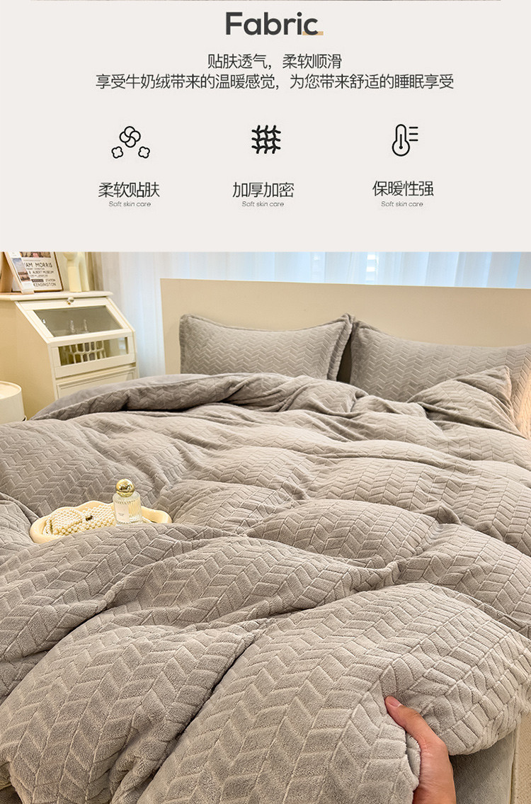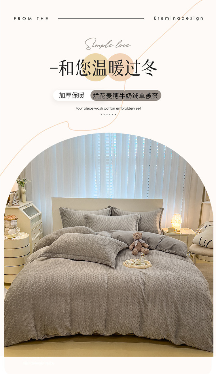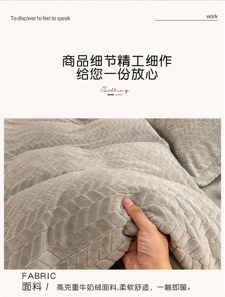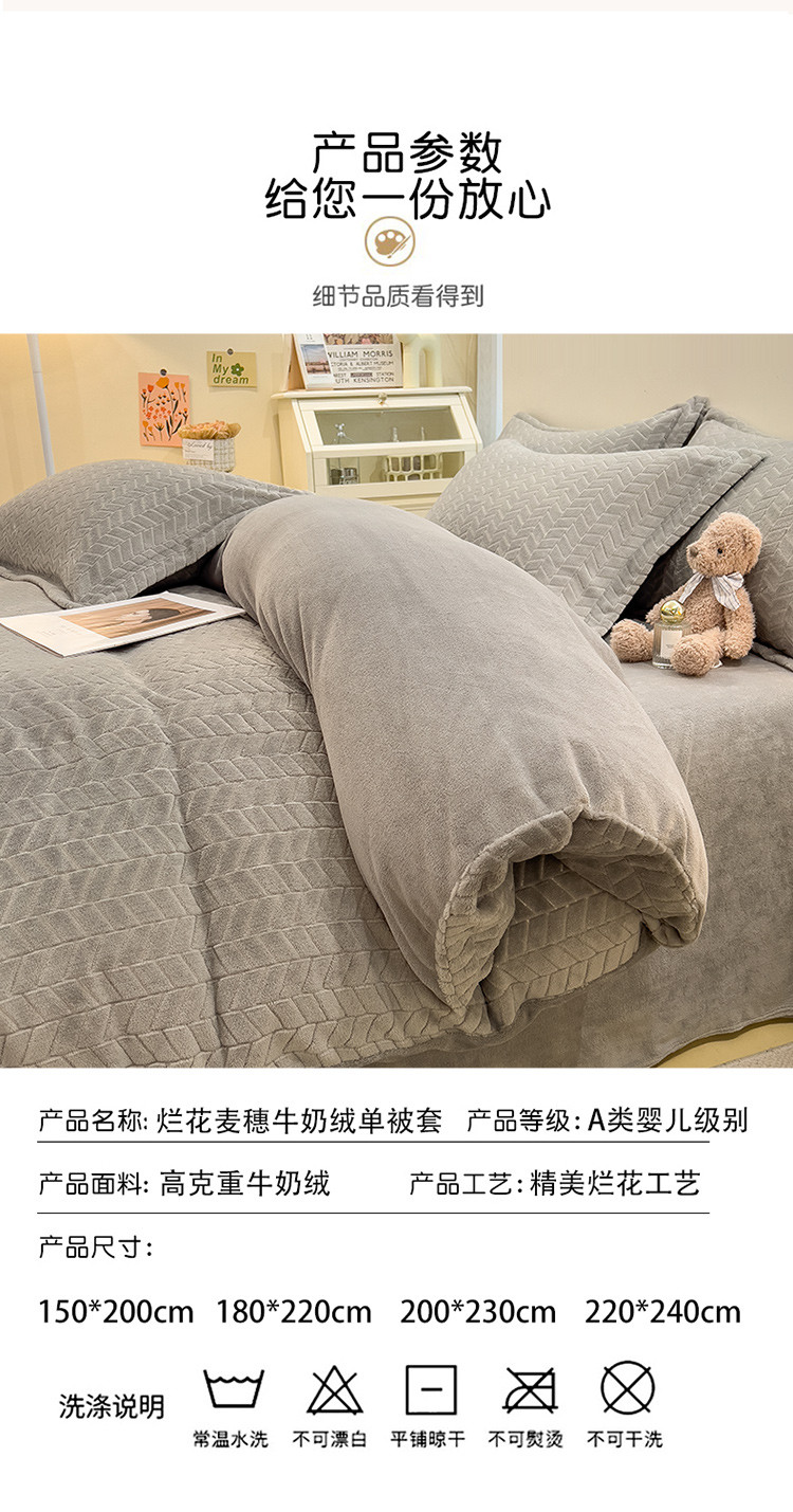商品名称:全季家居 2023新款麦穗纹高克重牛奶绒色织提花被套单件 浅灰