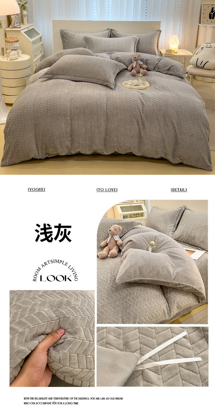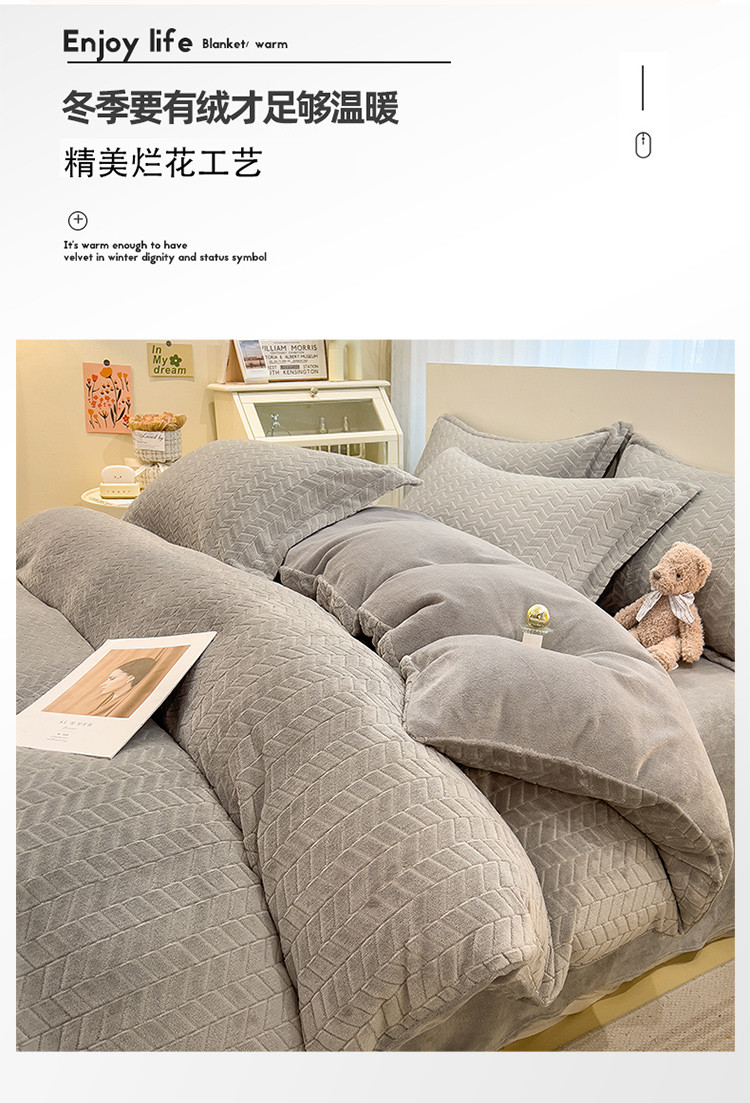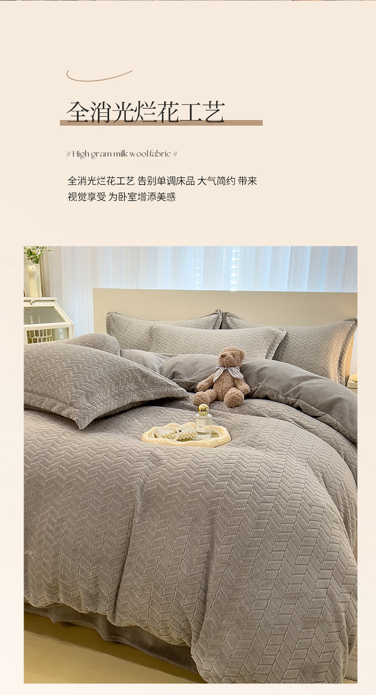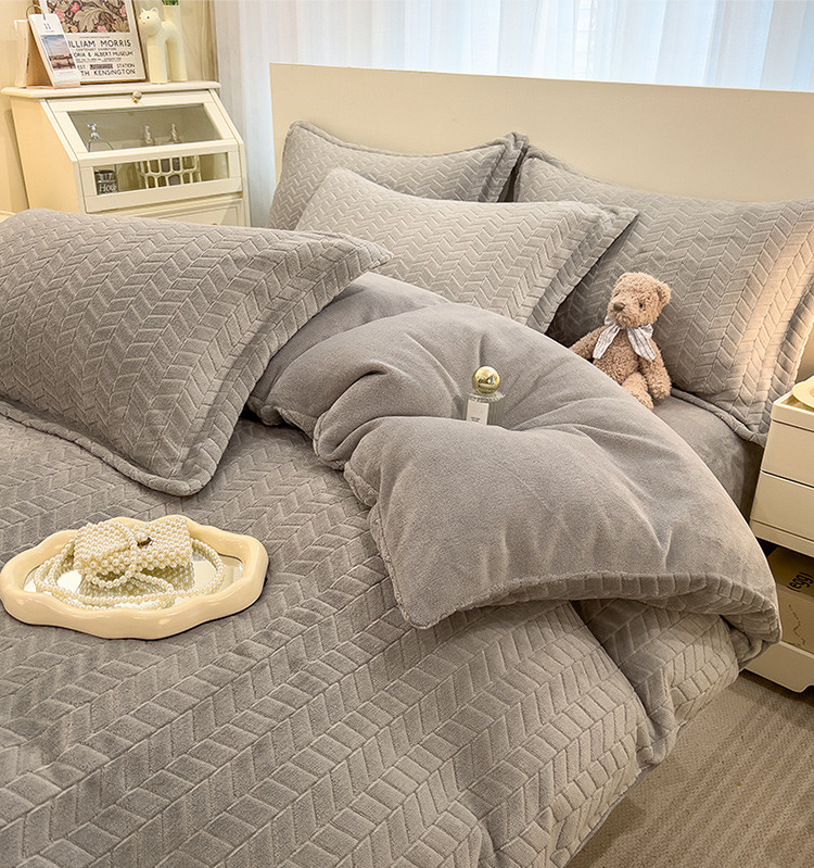 商品名称:全季家居 2023新款麦穗纹高克重牛奶绒色织提花被套单件 浅灰
