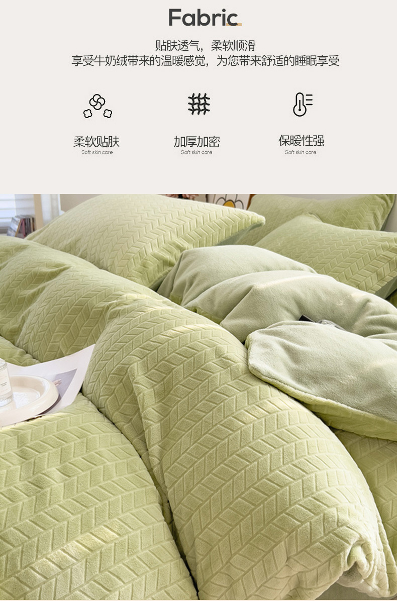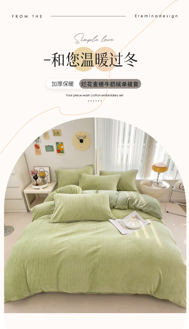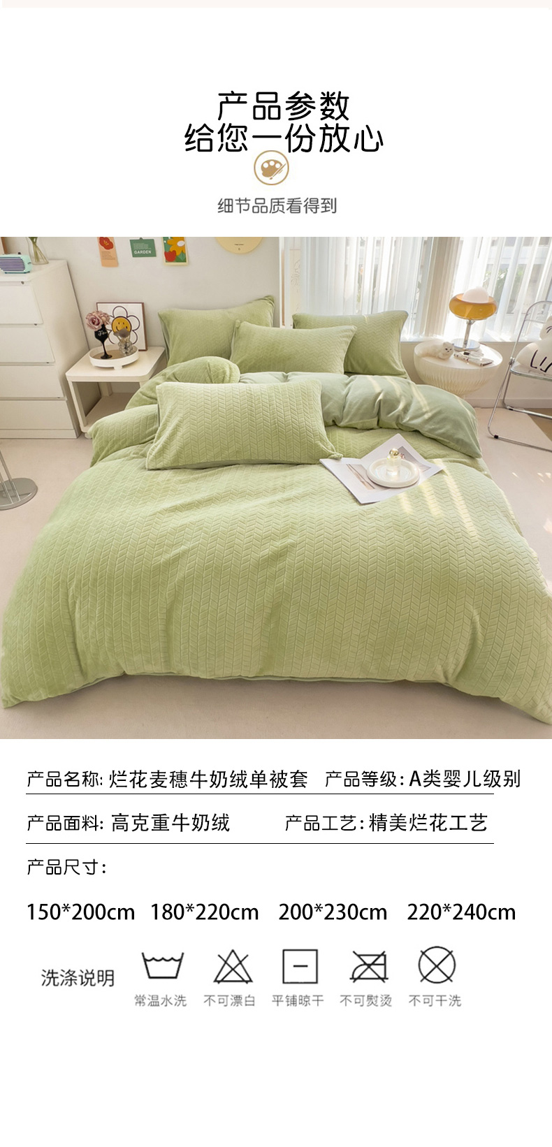商品名称:全季家居 2023新款小清新A类高克重加厚印花牛奶绒被套单件 果绿