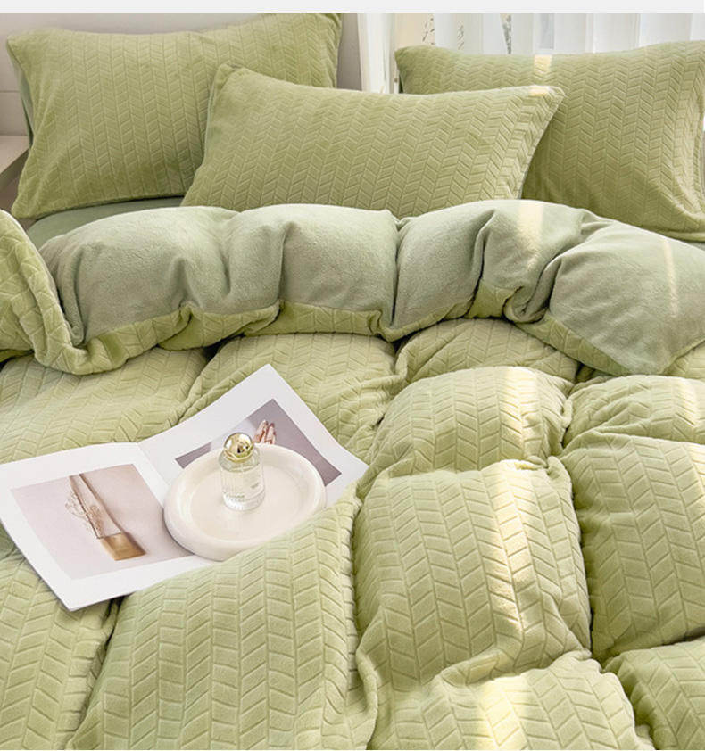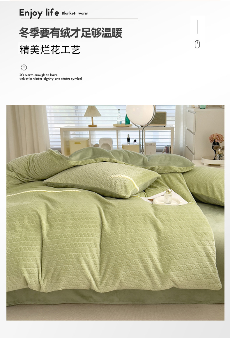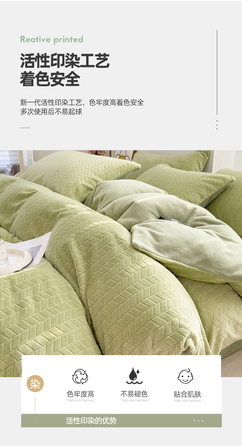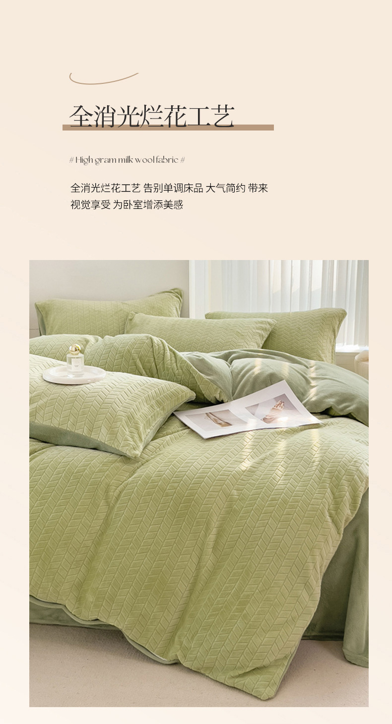 商品名称:全季家居 2023新款小清新A类高克重加厚印花牛奶绒被套单件 果绿