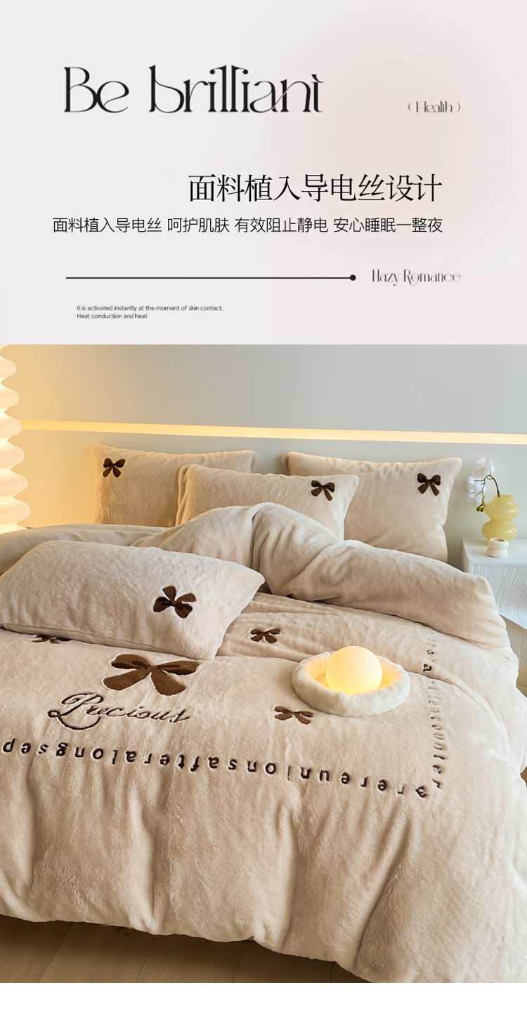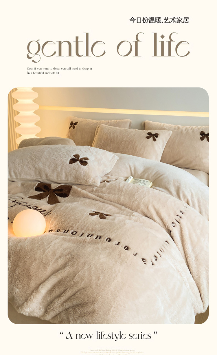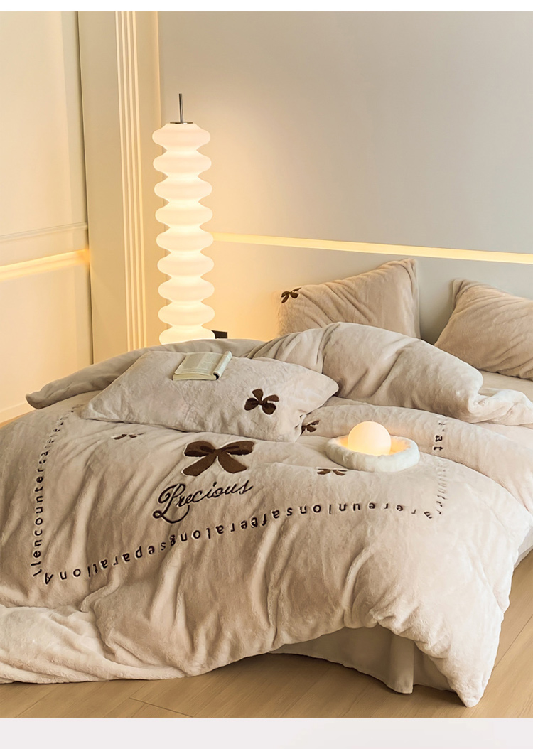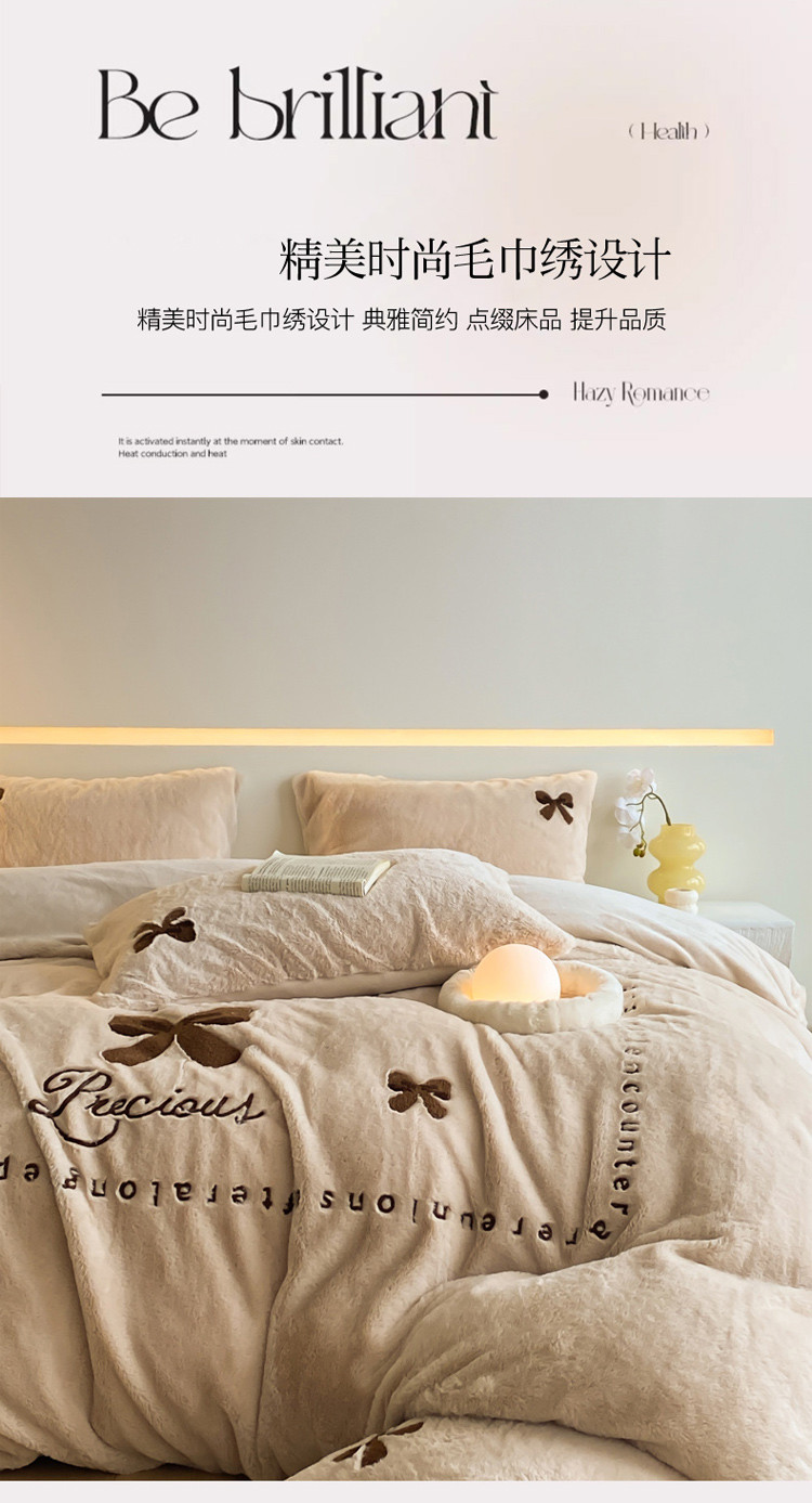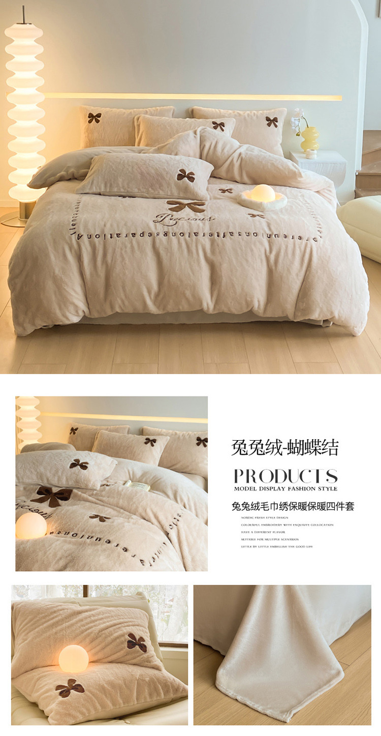 商品名称:寐居 2023新款高克重兔兔绒四件套 兔兔绒-蝴蝶结