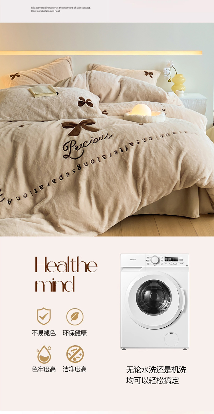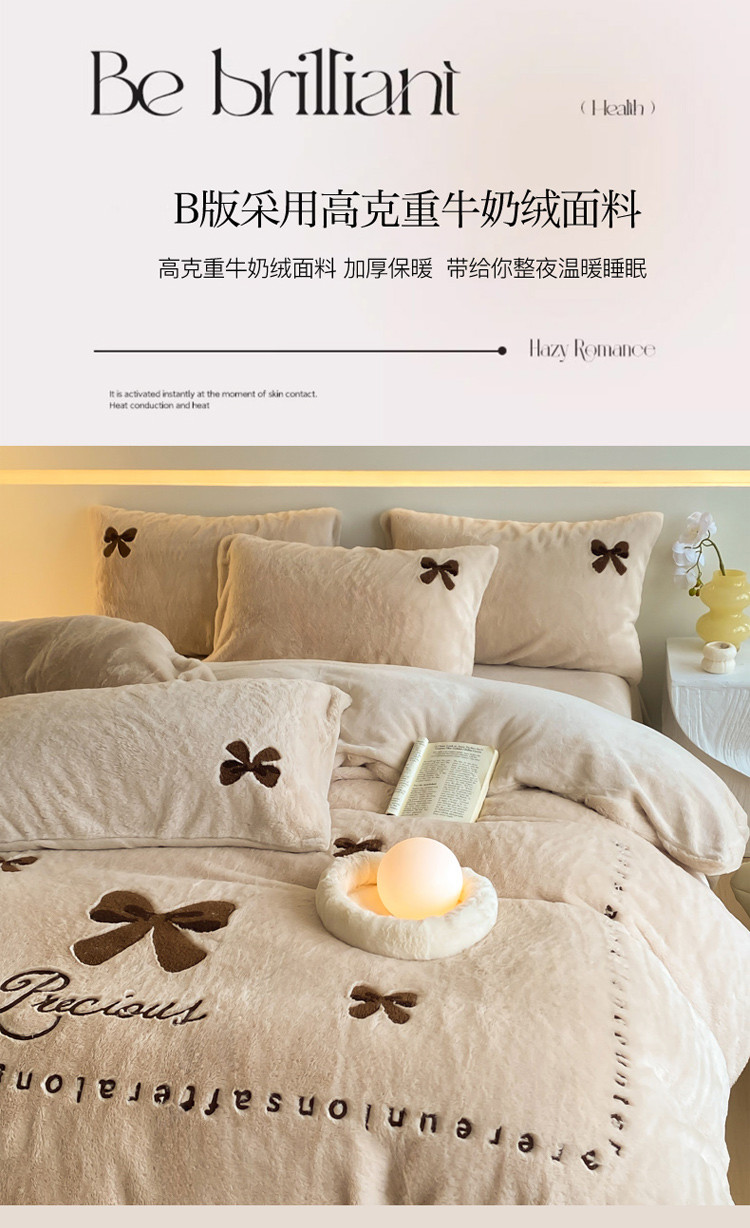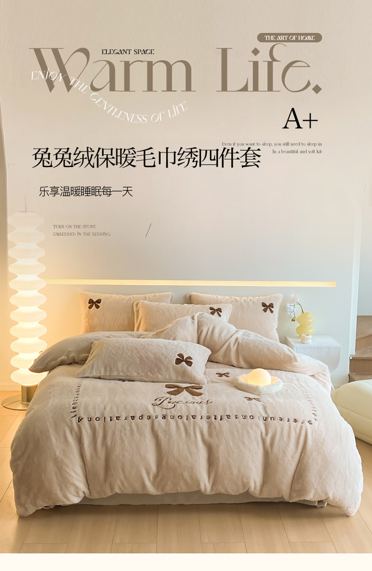 寐居 2023新款高克重兔兔绒四件套 兔兔绒-蝴蝶结