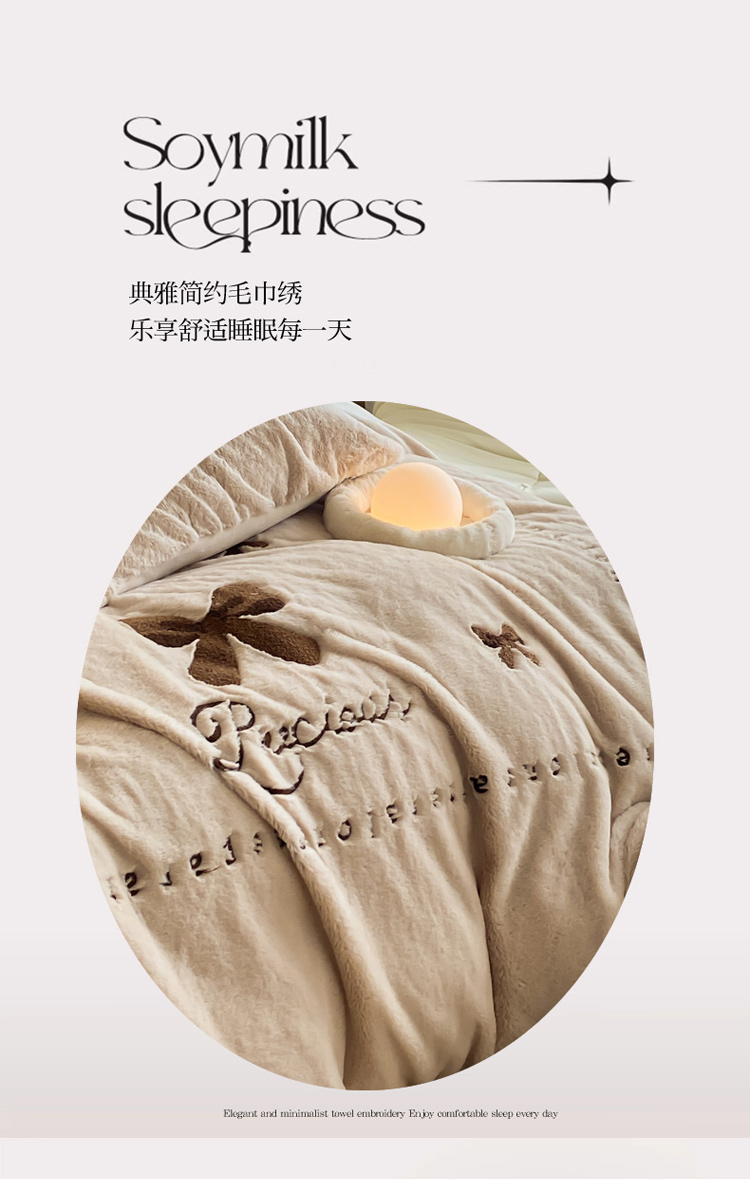 (总)寐居家纺 2025新款A类牛奶绒毛巾绣床盖,组合,格纹萌犬,红果果,萌兔有约,年年有鱼,甜心小骑,星伴小象