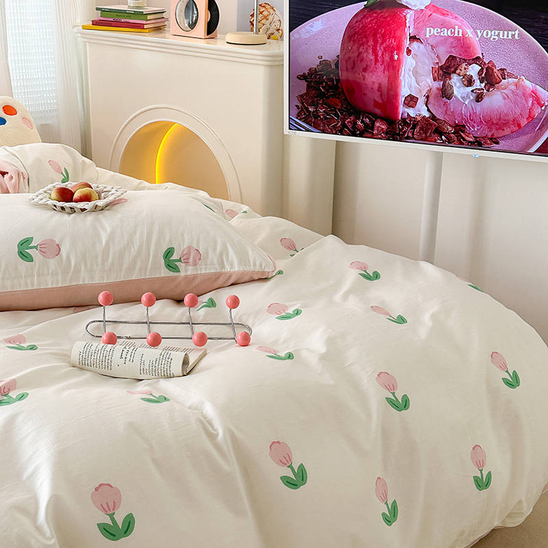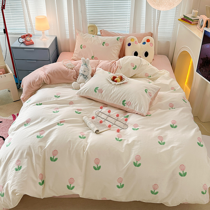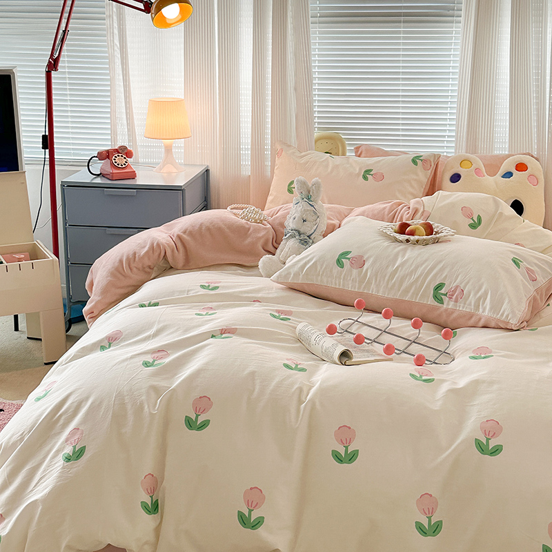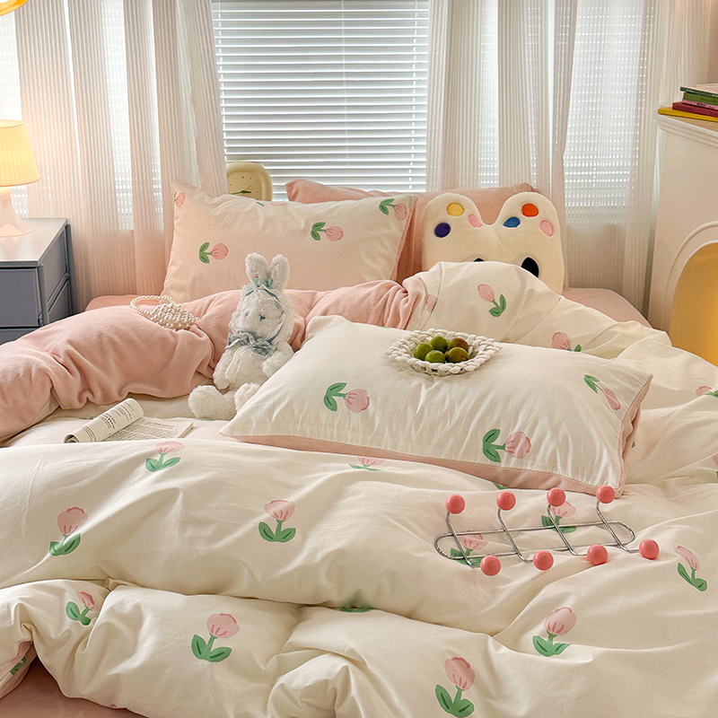 商品名称:昔可家纺 2023新款y2k卡通印花系列棉加绒四件套 粉嫩小郁金