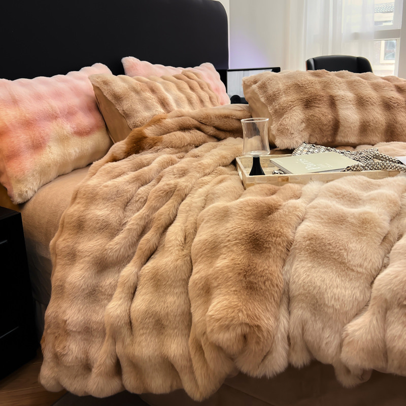 (总)满座2025新款高克重托卡斯仿皮草大泡泡兔兔绒牛奶绒四件套,清新绿,浅灰,柔粉 ,清新紫,纯咖,奶白,白咖
