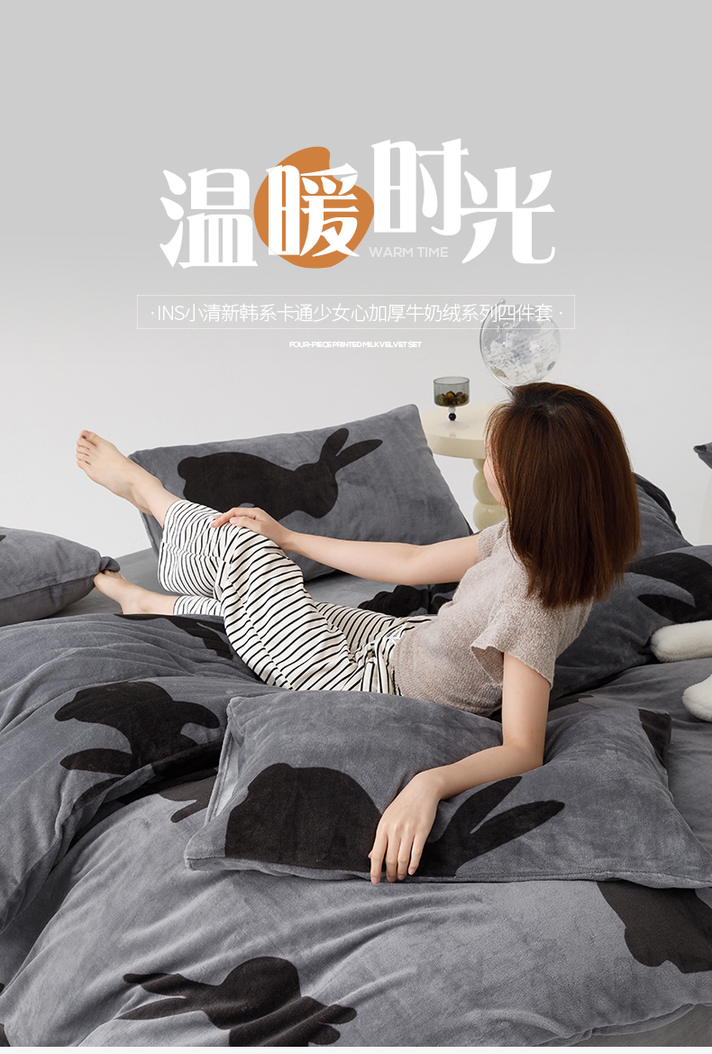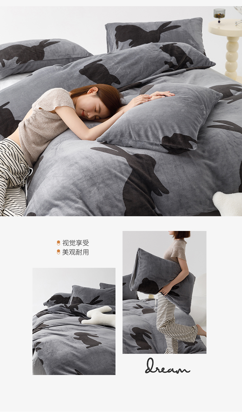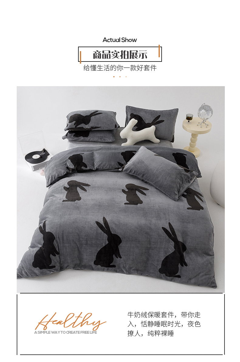 商品名称:桃子2023新款ins轻奢简约潮派极简高级时尚兔本兔高克重牛奶绒系列四件套 绒兔本兔-火山灰