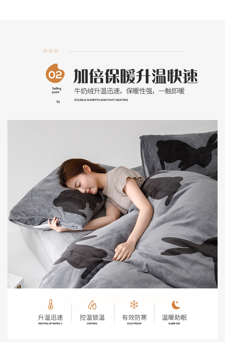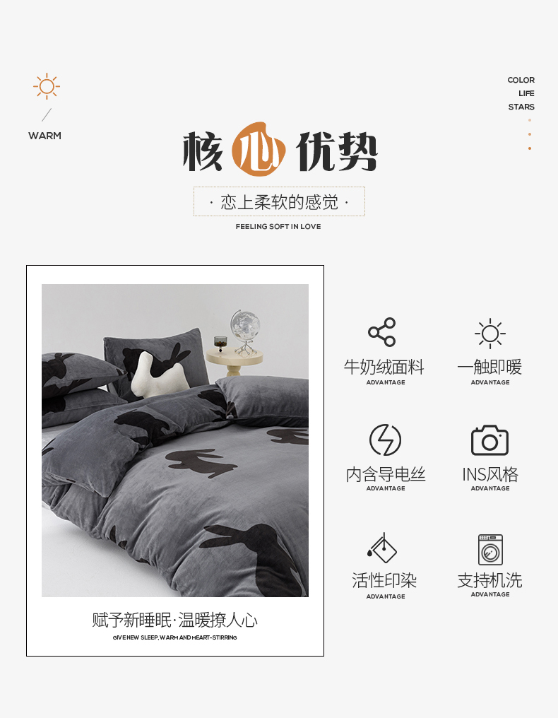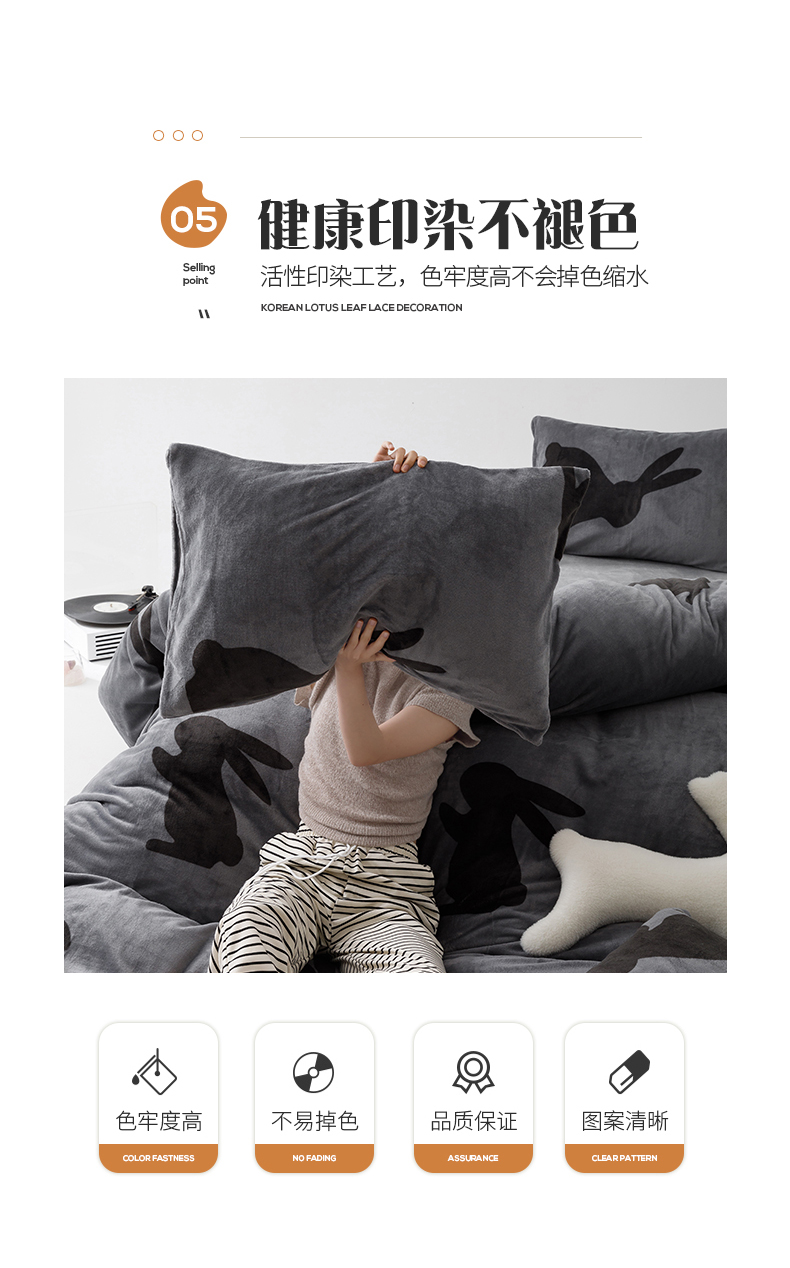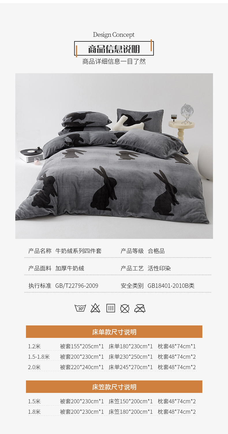 商品名称:桃子2023新款ins轻奢简约潮派极简高级时尚兔本兔高克重牛奶绒系列四件套 绒兔本兔-火山灰