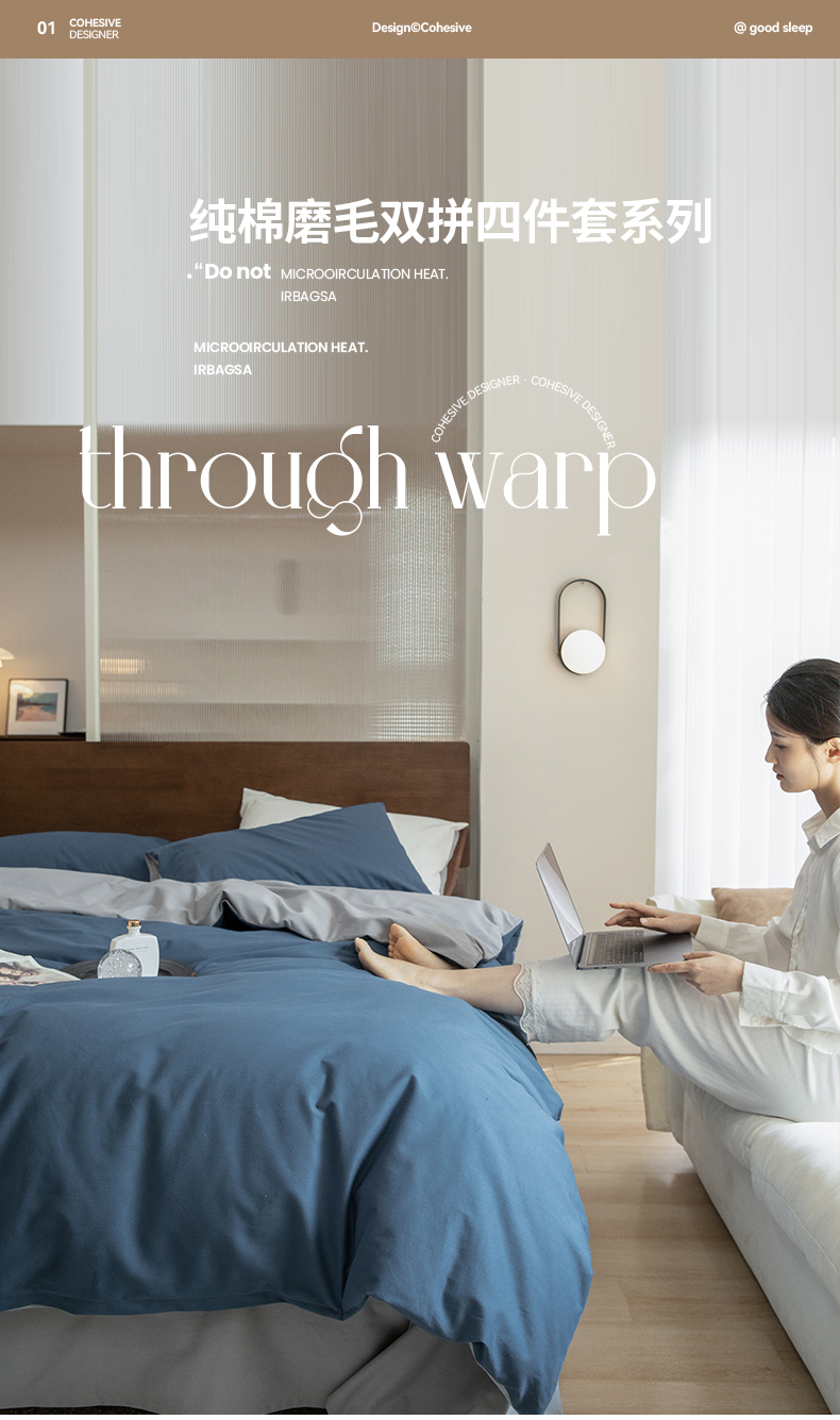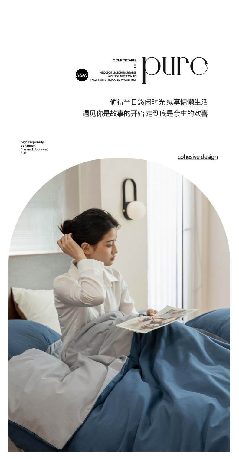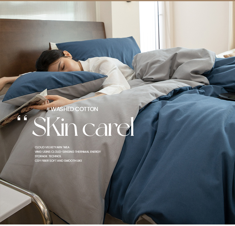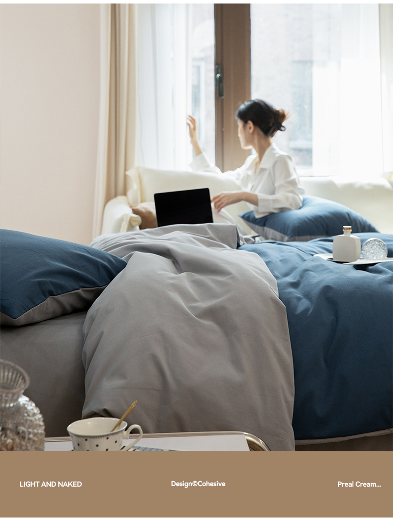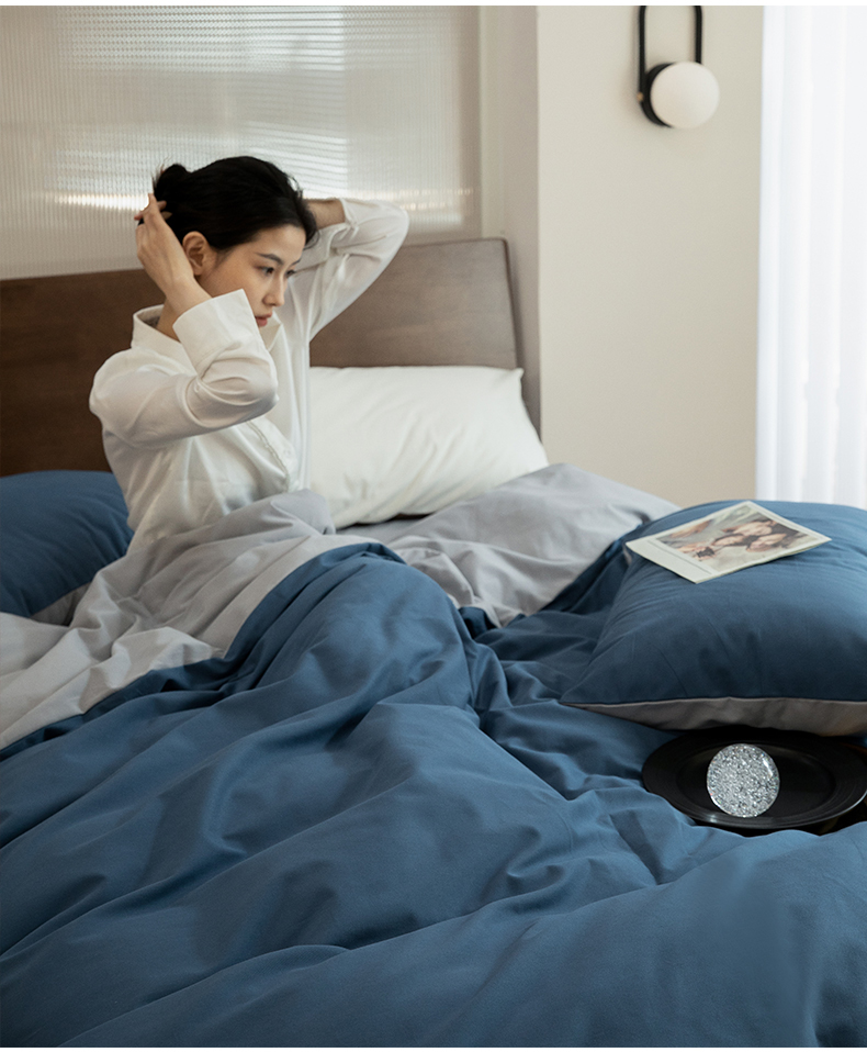 当前位置: 91家纺网 > 商品网购 > 床品套件 > 四件套 > 普通磨毛四件套 > 寐眠 2023新款纯棉磨毛双拼四件套 普鲁士蓝灰
