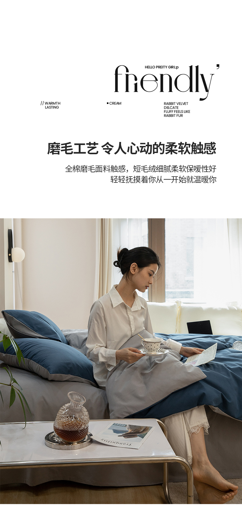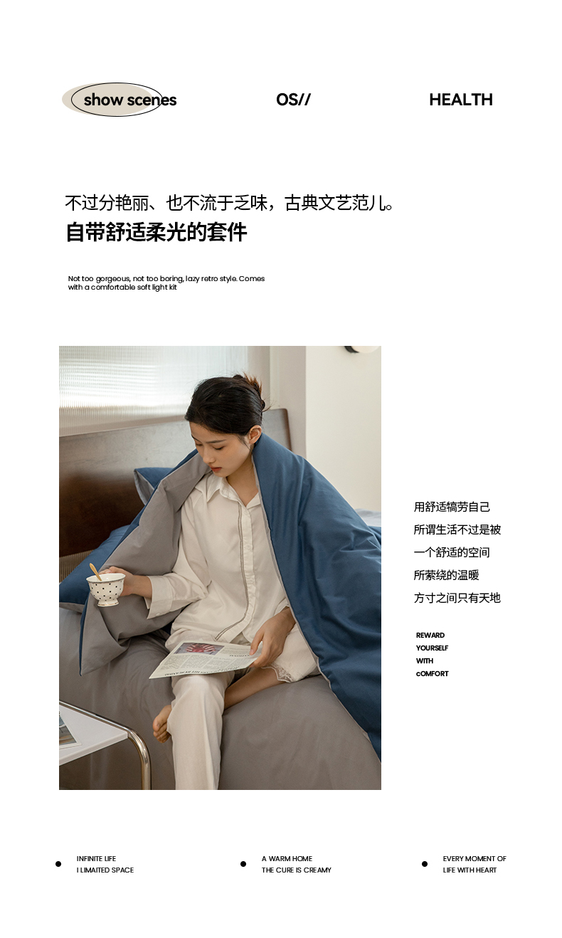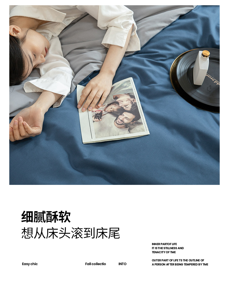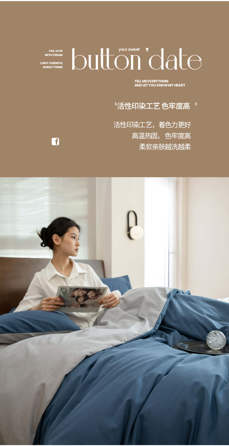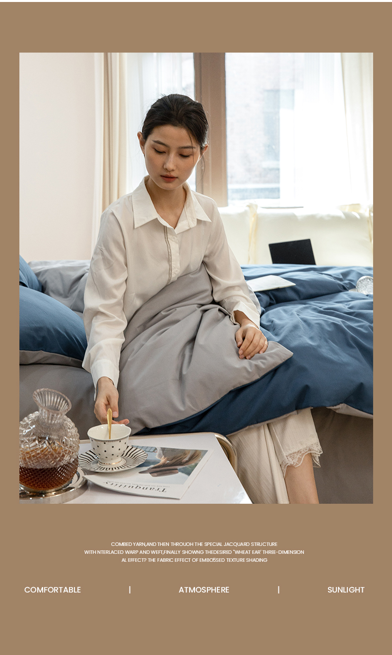 当前位置: 91家纺网 > 商品网购 > 床品套件 > 四件套 > 普通磨毛四件套 > 寐眠 2023新款纯棉磨毛双拼四件套 普鲁士蓝灰