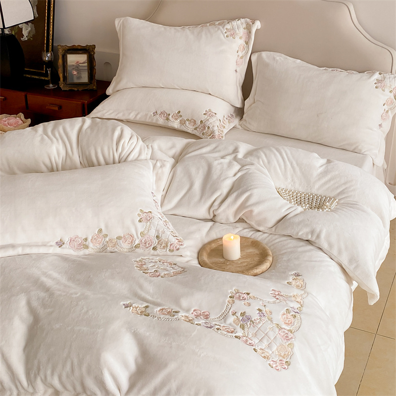 (总)馨蕊家居 2025新款意大利进口高精密刺绣拼角工艺秋冬法式高奢雪貂绒系列-绒雪芙 会员-10【券后控价358/378】,绒雪芙-奶咖,绒雪芙-蔷薇粉,绒雪芙-婉若紫,绒雪芙-月光白