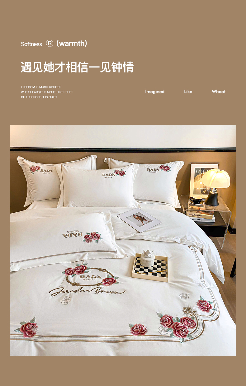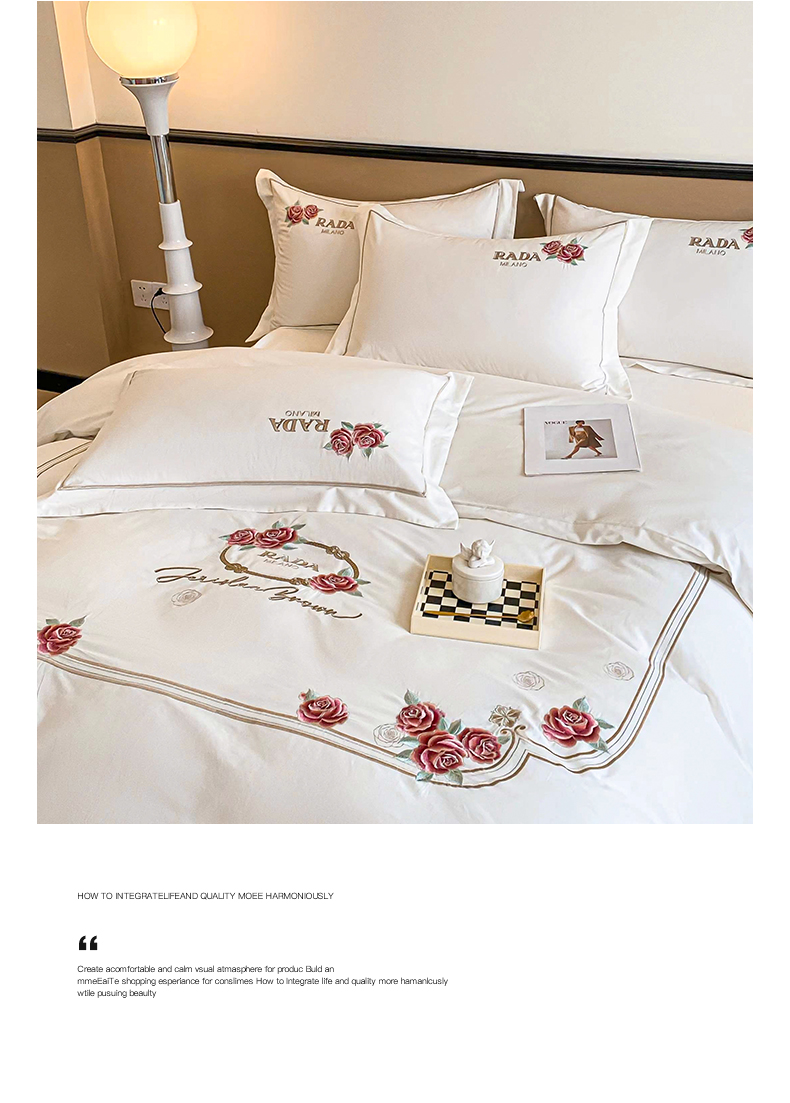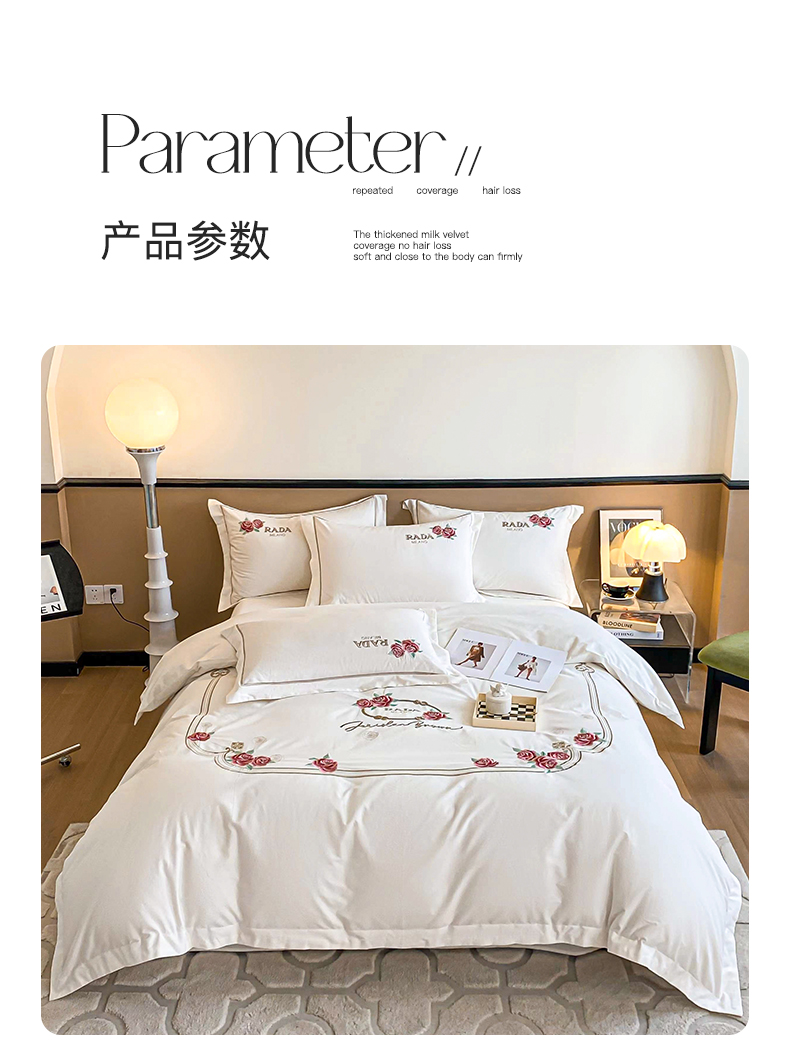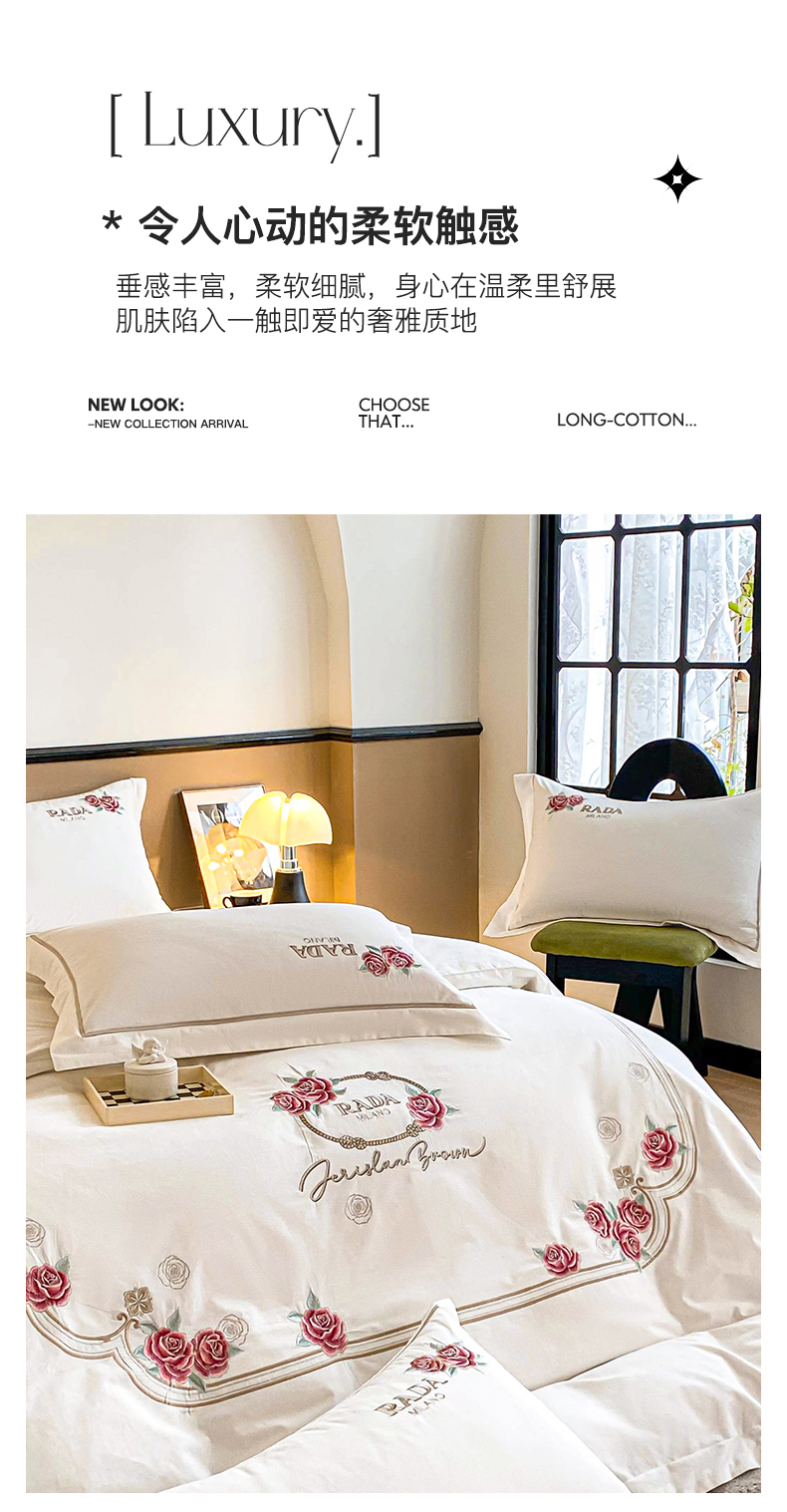 商品名称:理想家家纺 2023新款全棉磨毛刺绣四件套 玫瑰庄园 白