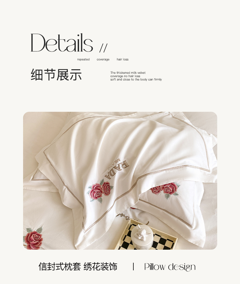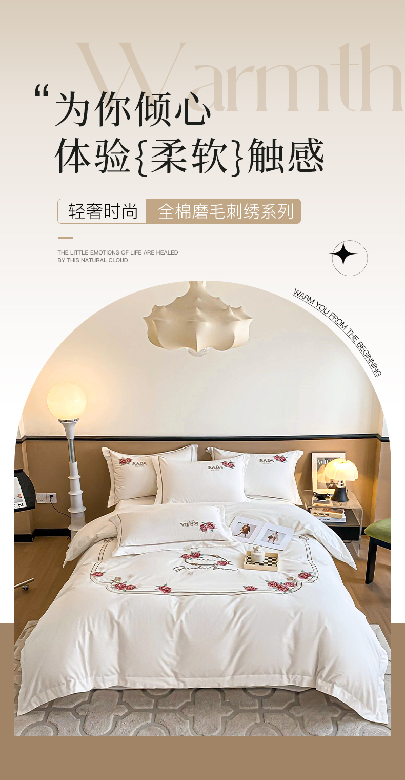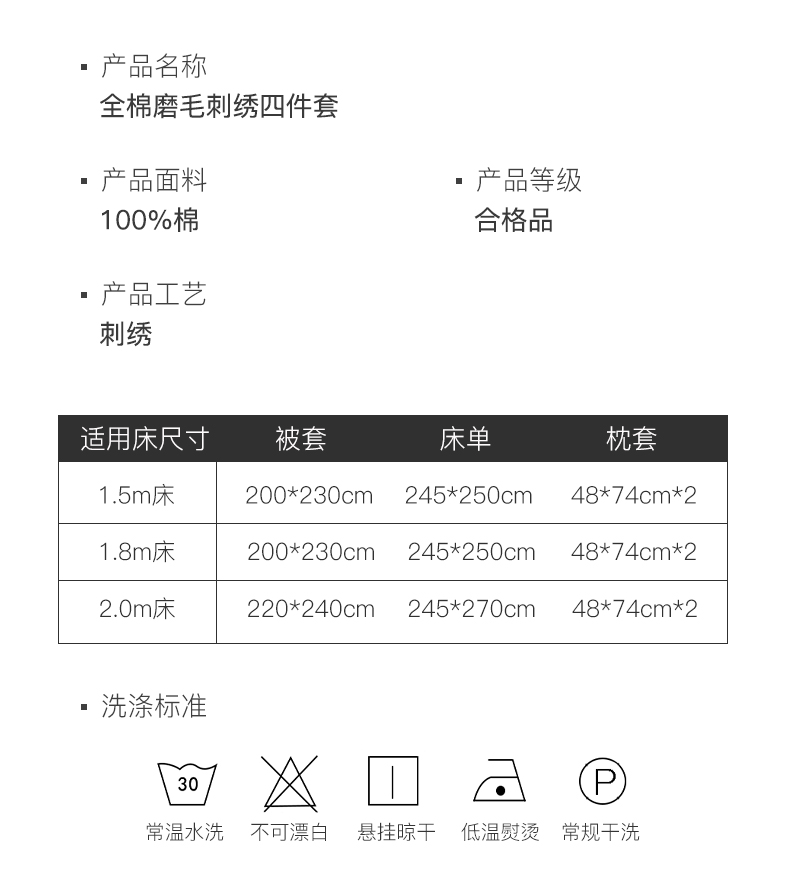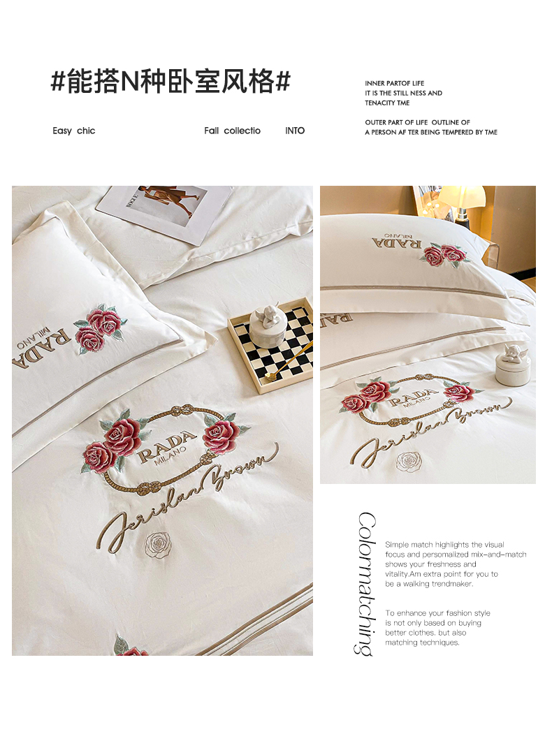 商品名称:理想家家纺 2023新款全棉磨毛刺绣四件套 玫瑰庄园 白