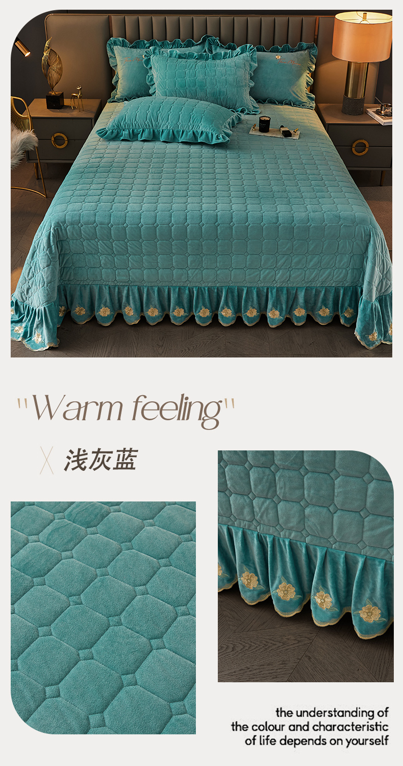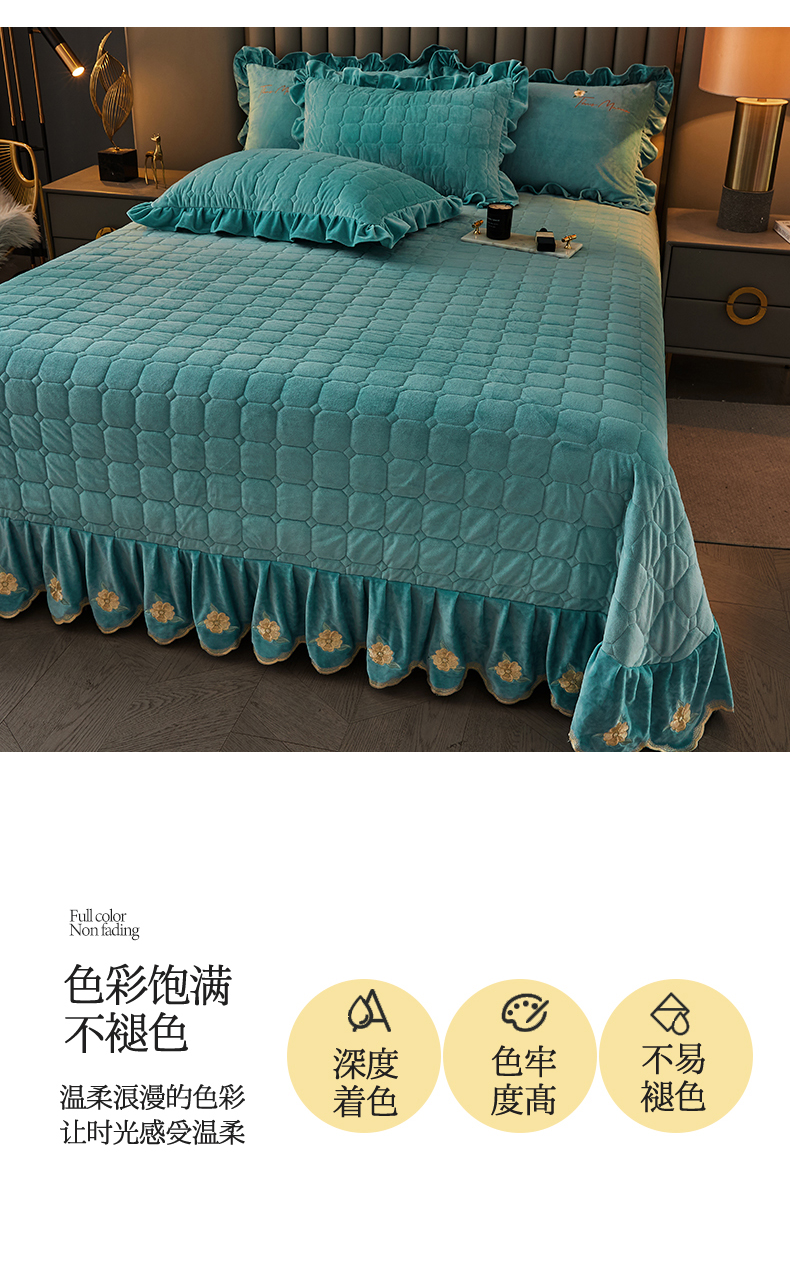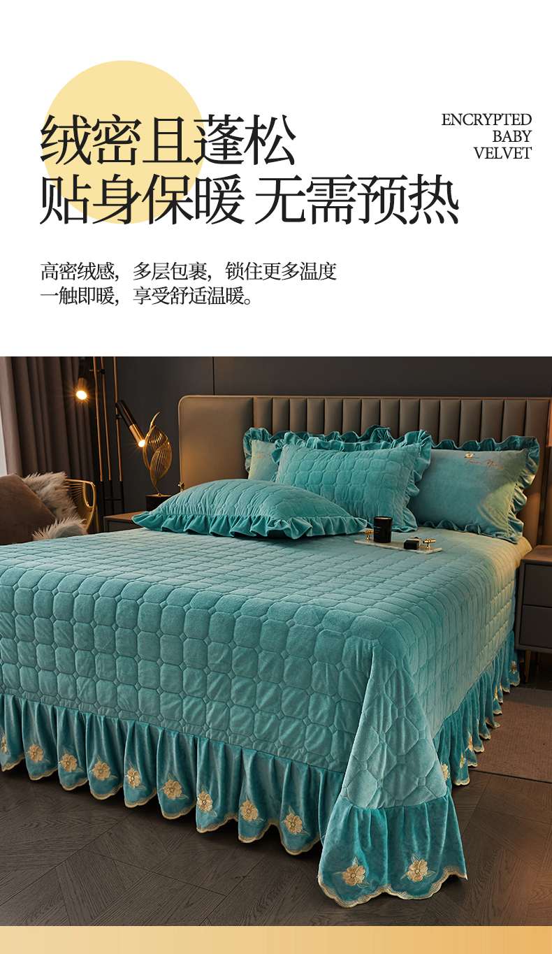 (总)恒爱 2022新款秋冬轻奢宝宝绒刺绣单床裙,爱玛橙,宾利蓝,豆沙红,橄榄绿,高级灰,酒红,梦想粉,浅灰蓝,温馨粉,喜庆红,香妃粉,香芋紫