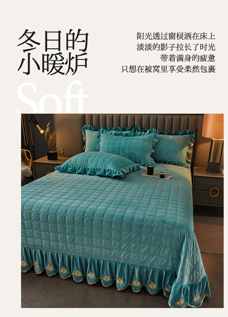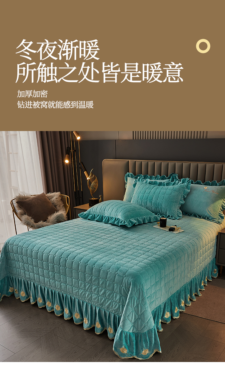 (总)恒爱 2022秋冬水晶绒翩翩花舞夹棉床裙四件套,大红色,豆沙红,橄榄绿,公主粉,桔色,咖啡色,孔雀绿,拉菲红,罗兰紫,玫红色,美人玉,米白色,米驼色,抹茶绿,浅灰色,紫色