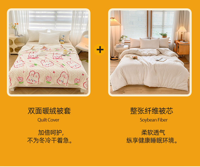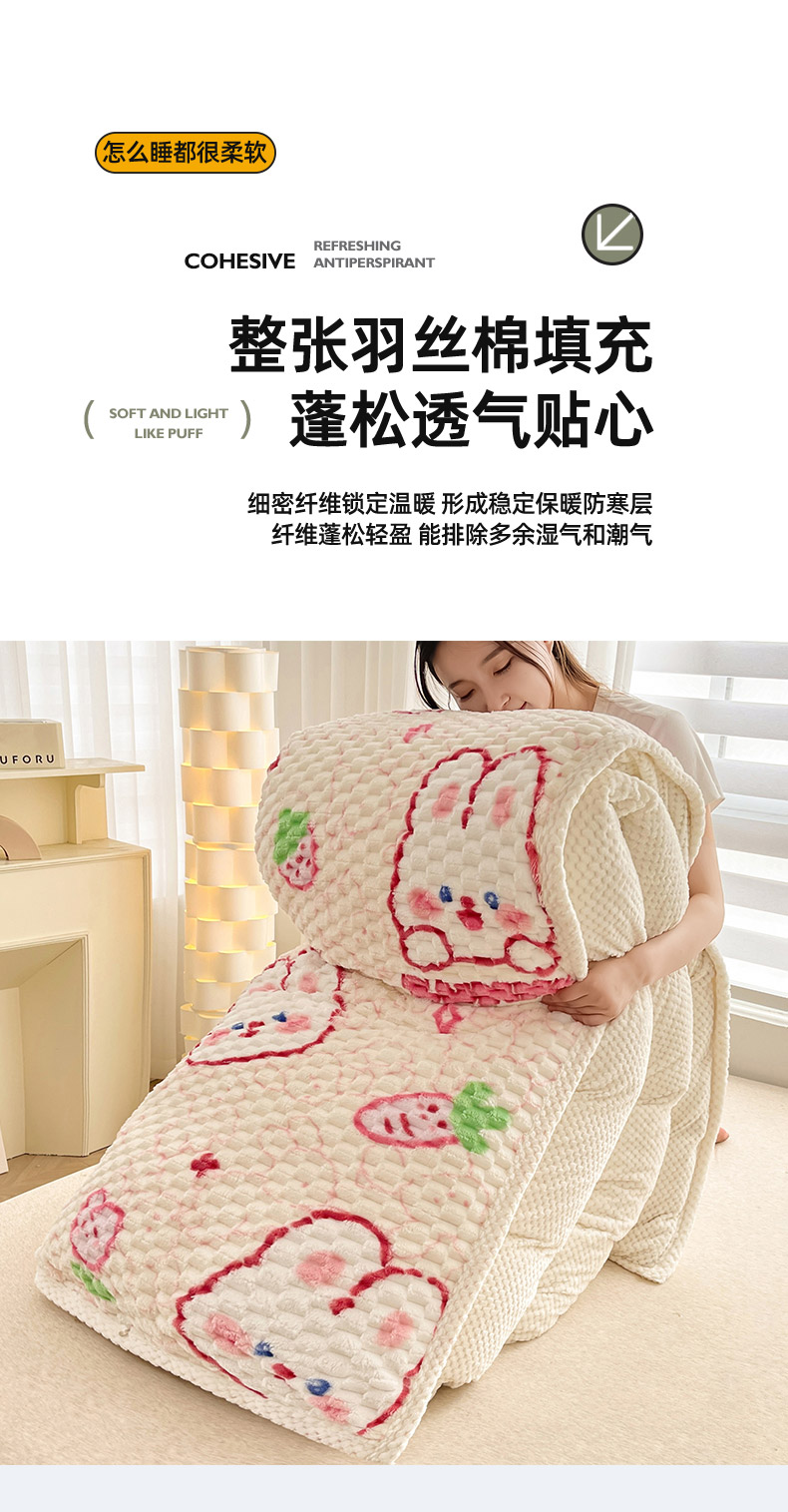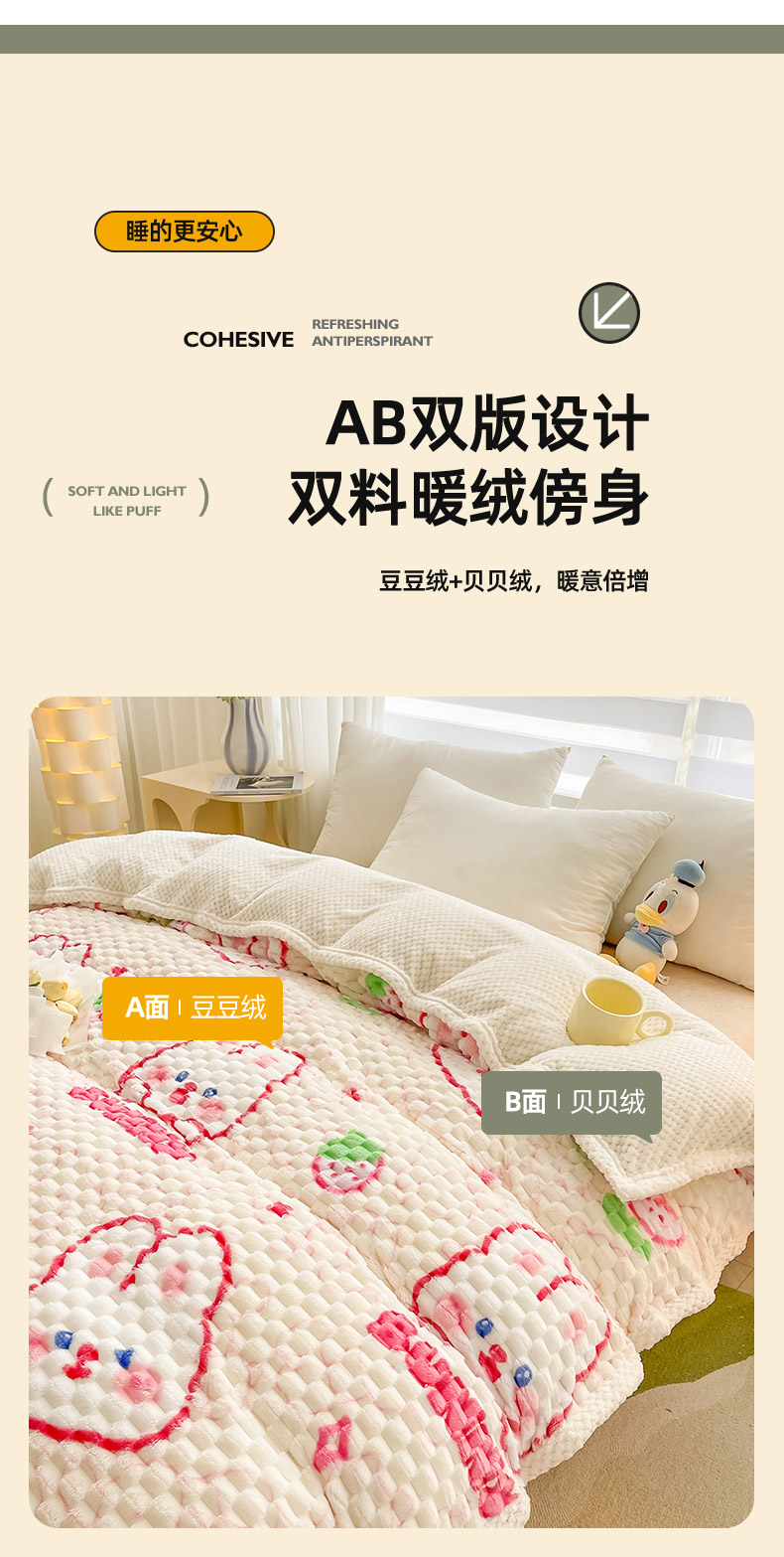 • 91家纺网 家纺一手货源 找家纺 熙宴 2023新款豆豆绒可拆卸被芯 欢乐兔