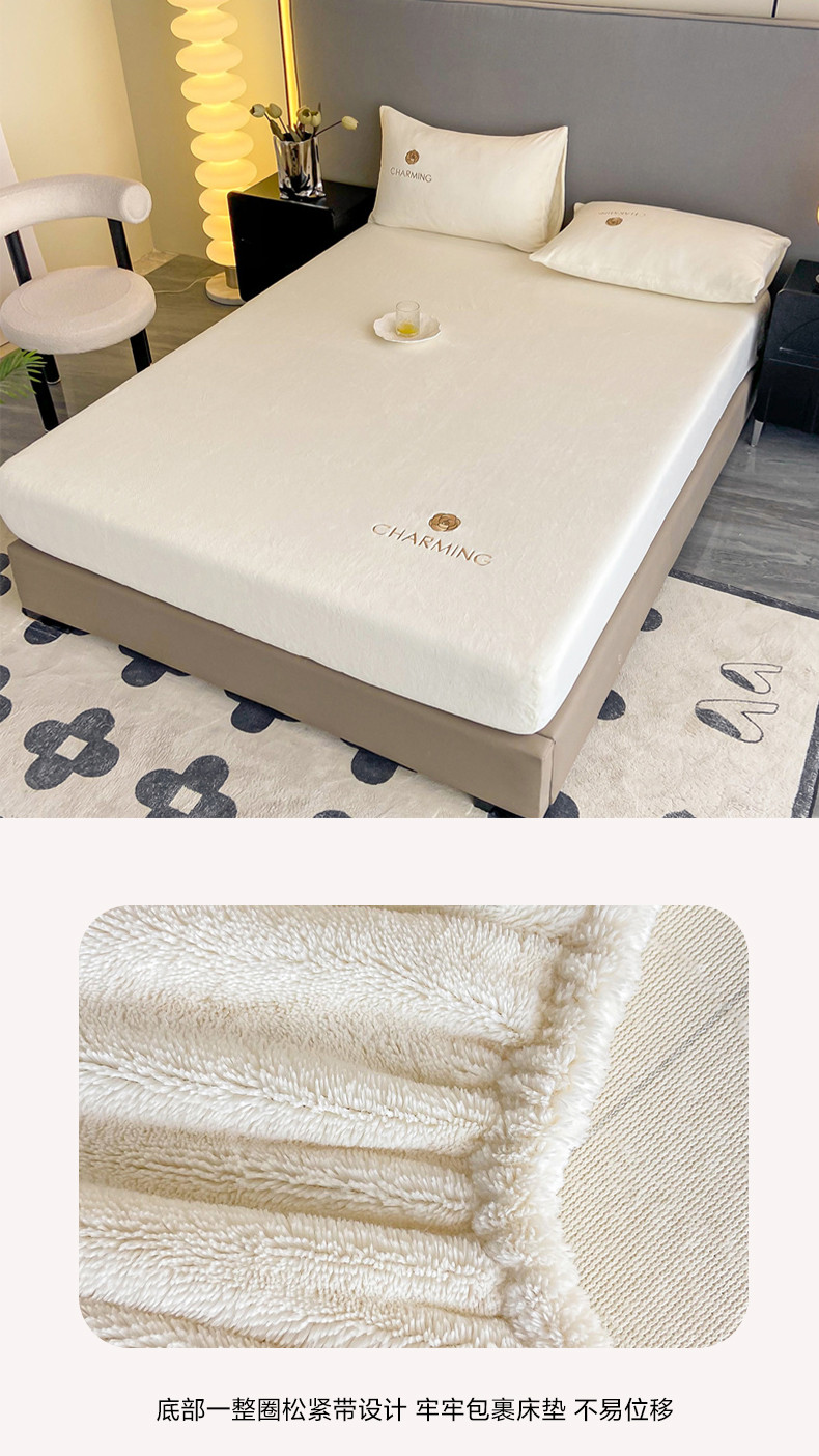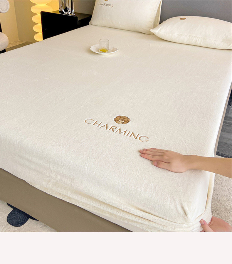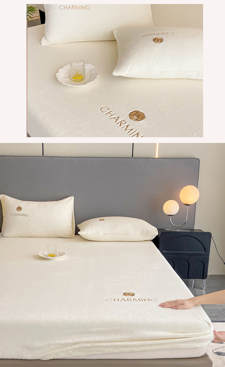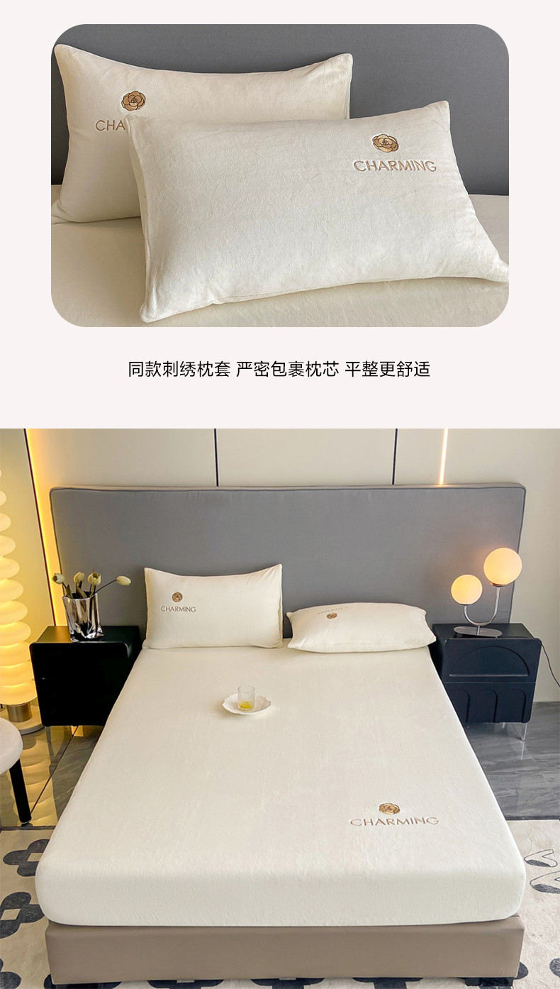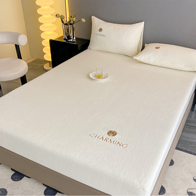 古吉梦 2023新款牛奶绒刺绣床笠-琳达 琳达-奶芋色