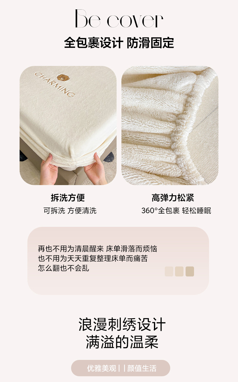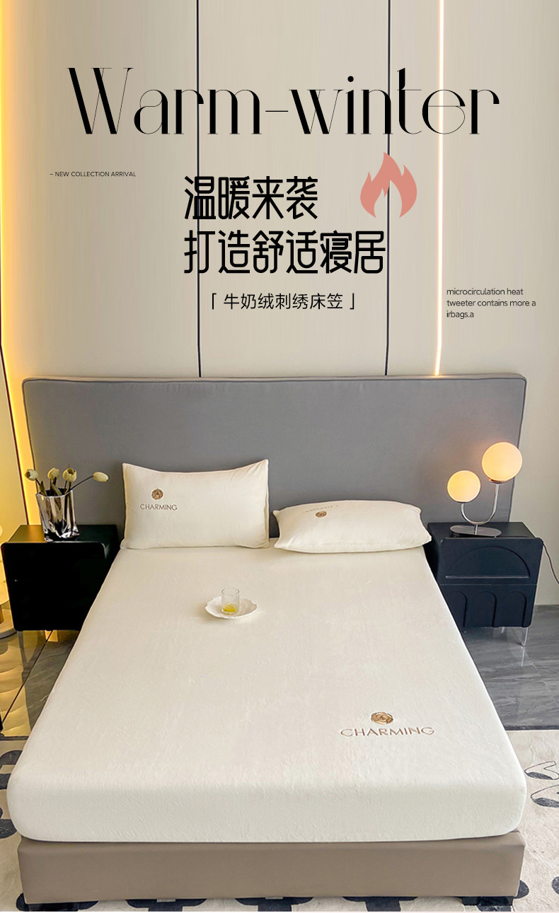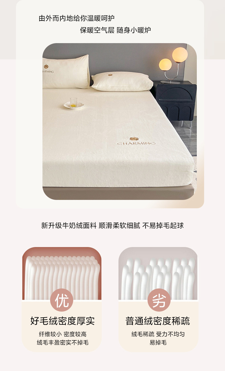 • 91家纺网 家纺一手货源 找家纺 古吉梦 2023新款牛奶绒刺绣床笠-琳达 琳达-奶芋色