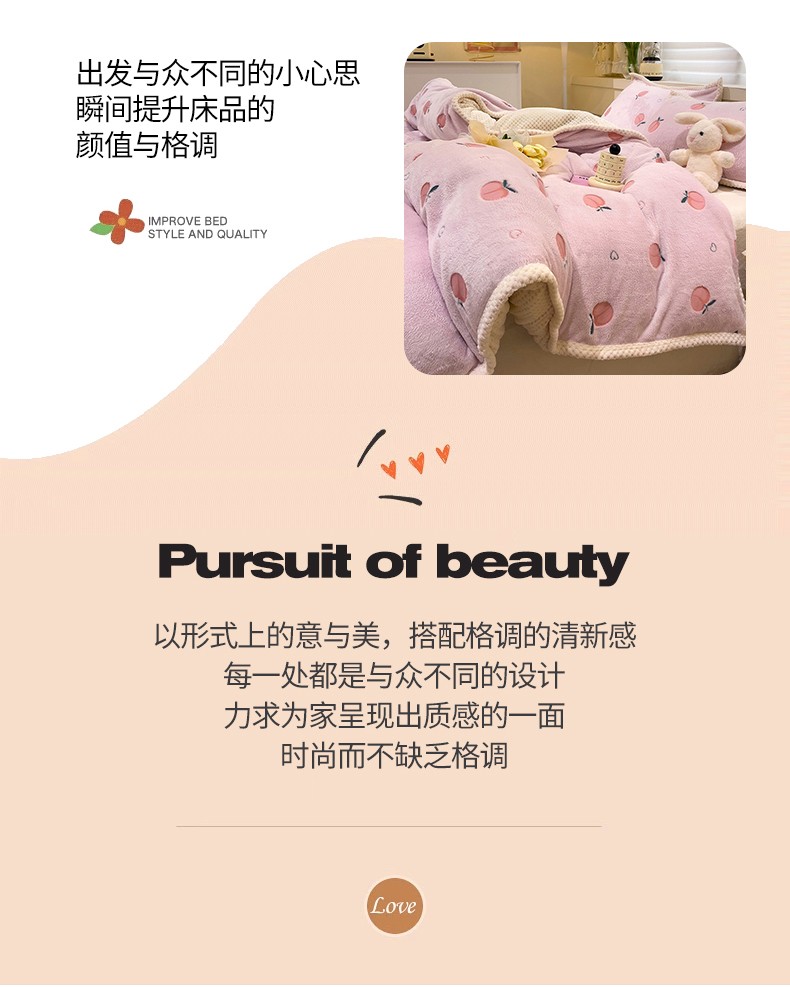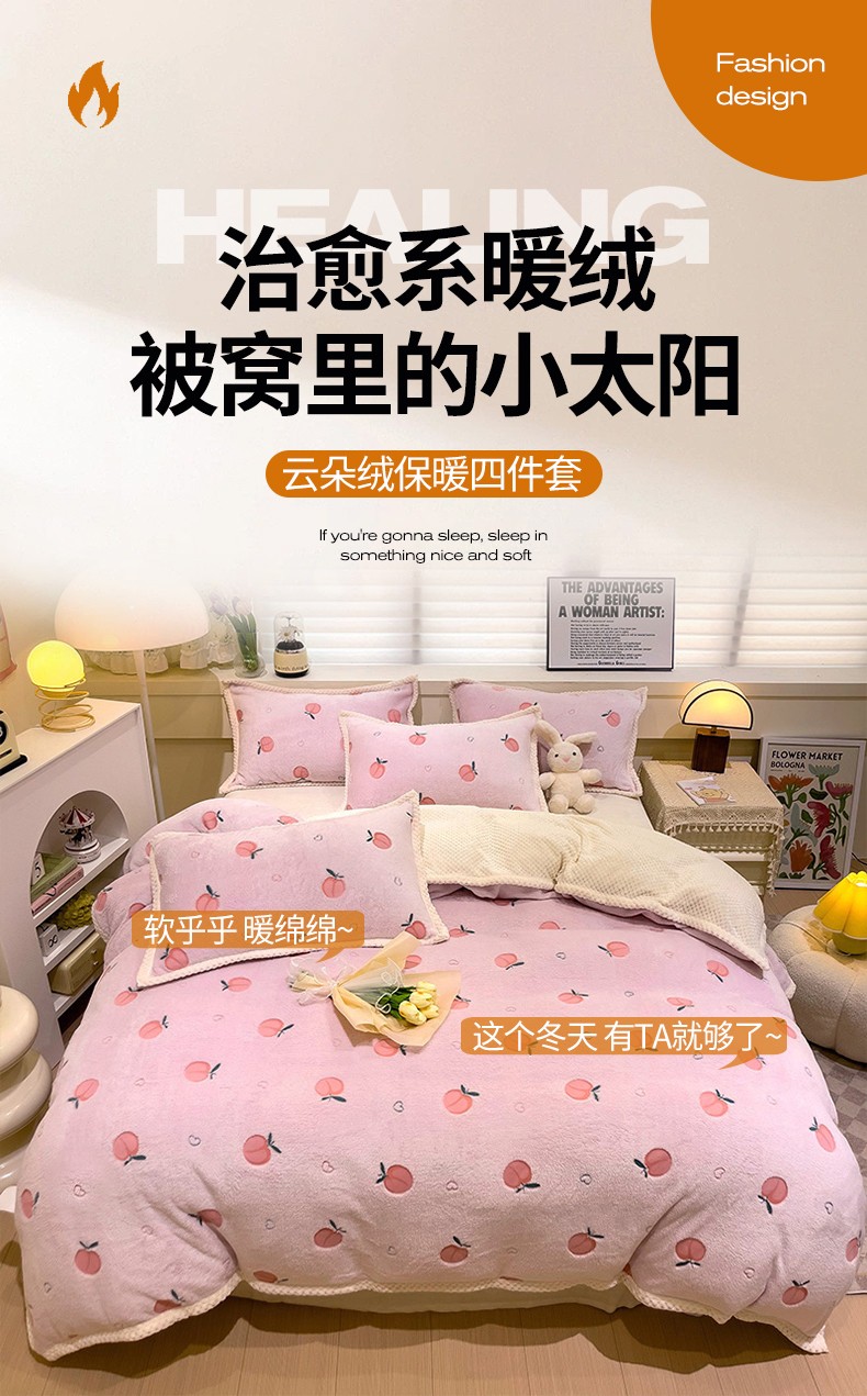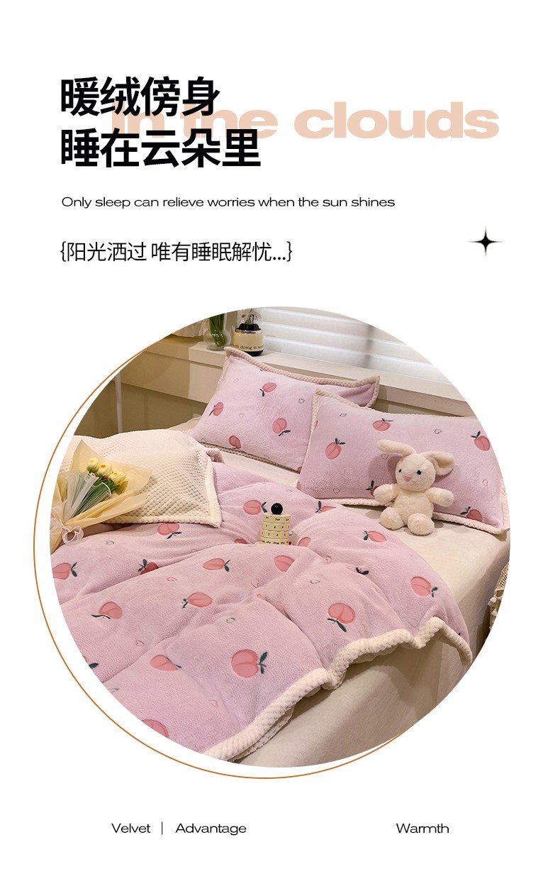 当前位置: 91家纺网 > 商品网购 > 床品套件 > 四件套 > 牛奶绒四件套 > 锦威郎 2023新款云朵绒保暖牛奶绒毛毯绒单被套加绒加厚法莱绒四件套 蜜桃粉