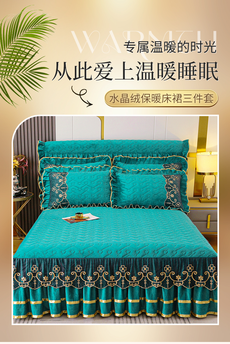 • 91家纺网 家纺一手货源 找家纺 (总)屹成家纺2025新款水晶绒夹棉绗缝蕾丝床裙三件套(塞纳河畔)床裙单件起售价不低于105元,大红,豆沙,翡翠绿,粉玉,橄榄绿,蔚蓝,银灰