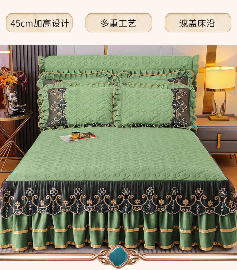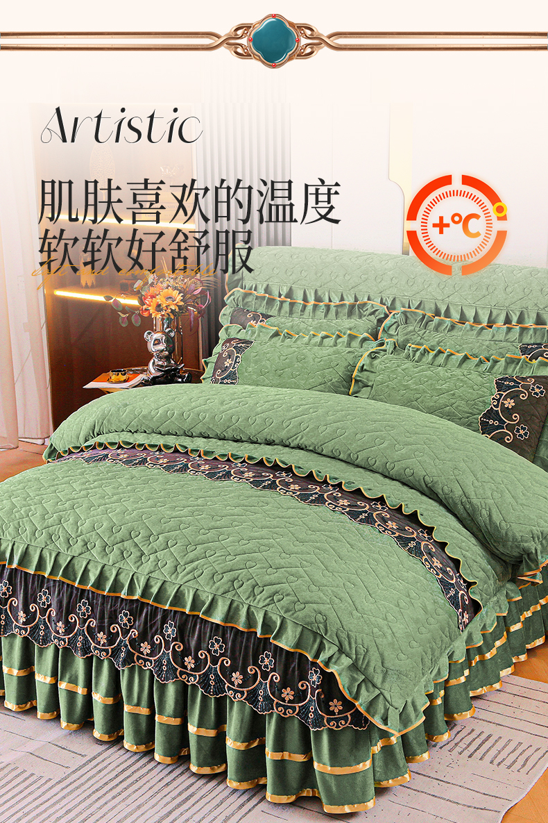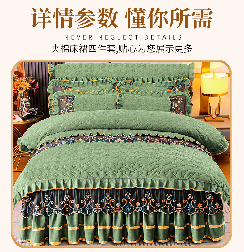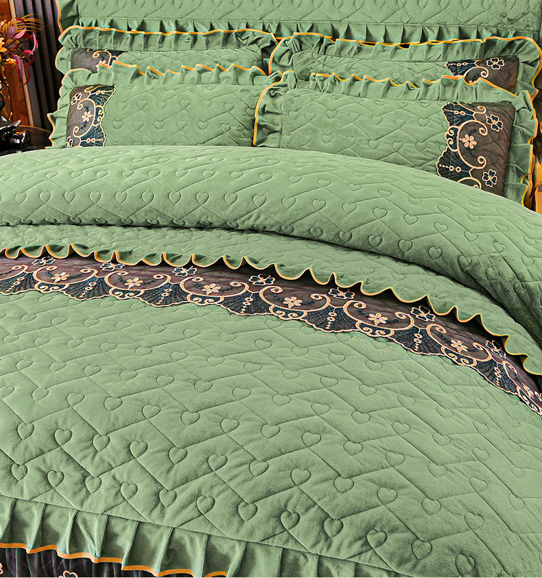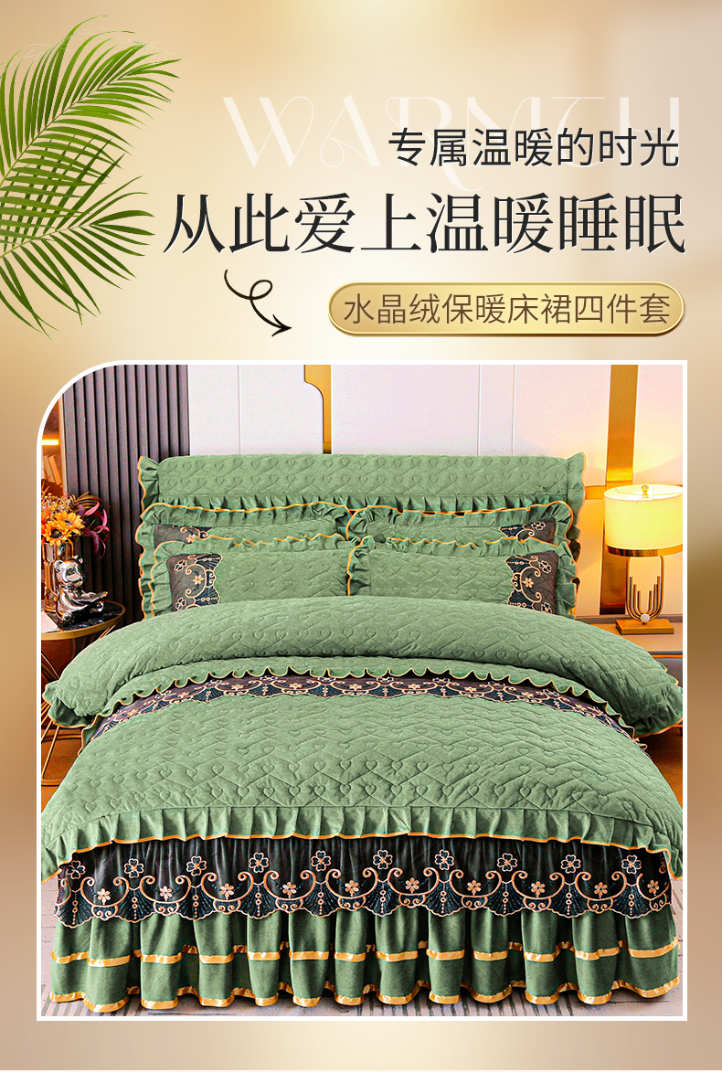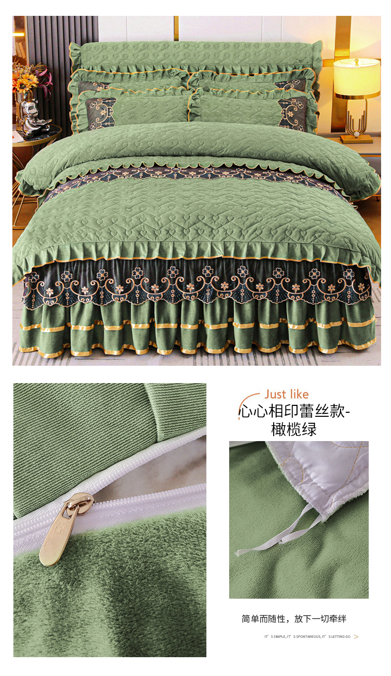 当前位置: 91家纺网 > 商品网购 > 床品套件 > 四件套 > 水晶绒四件套 > 新款心心相印蕾丝款水晶绒保暖床裙四件套 心心相印蕾丝款-橄榄绿