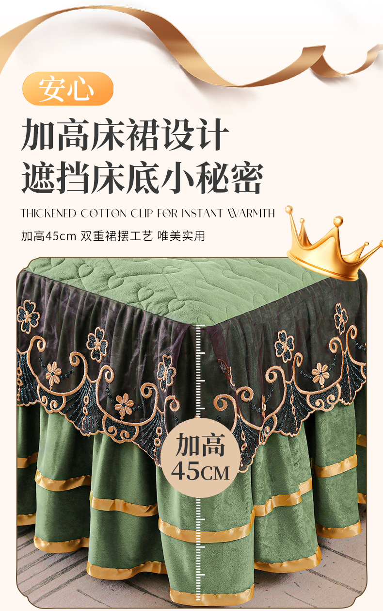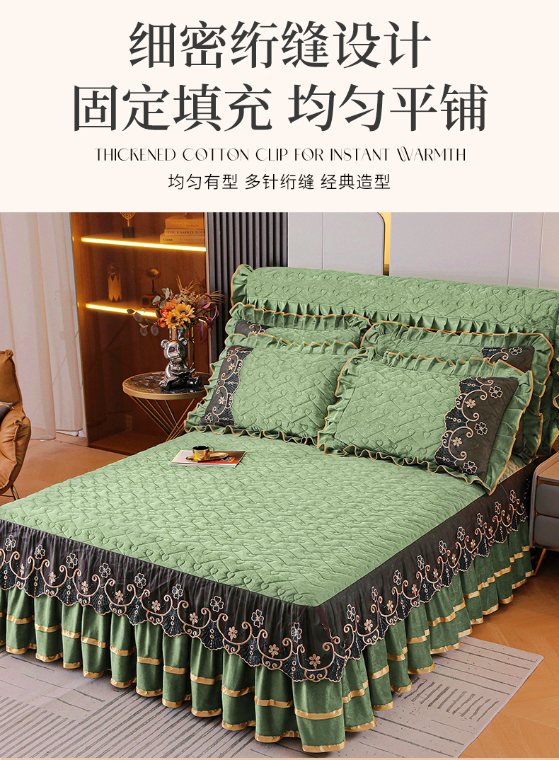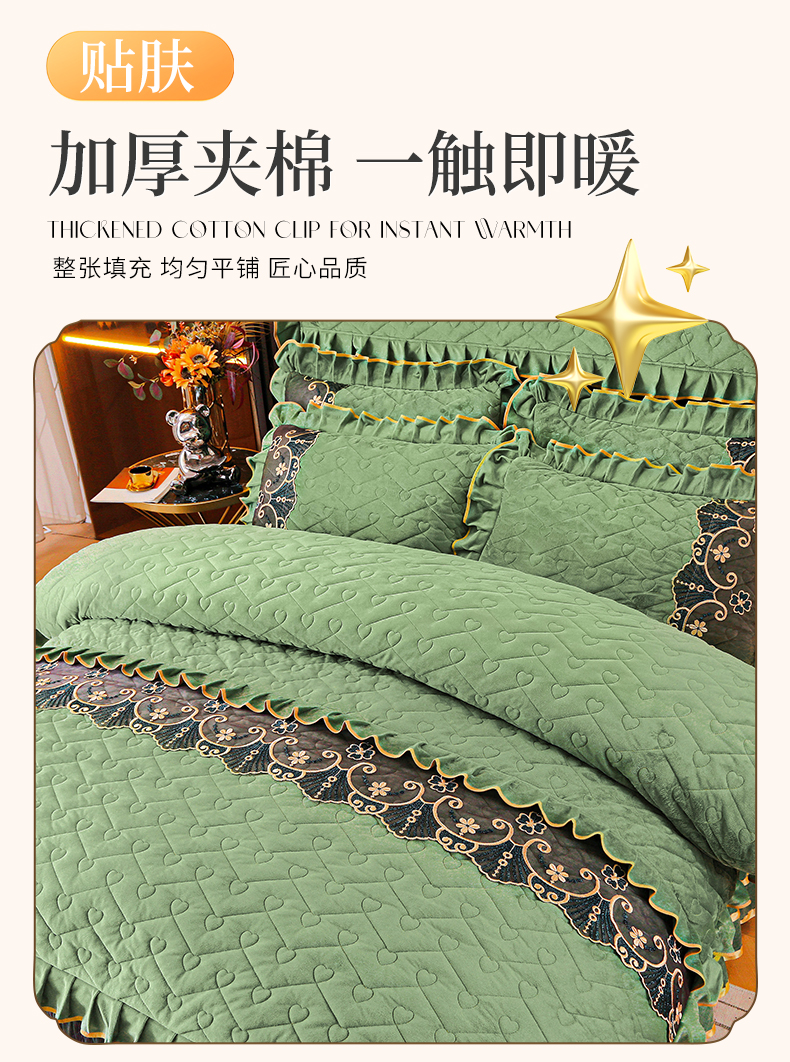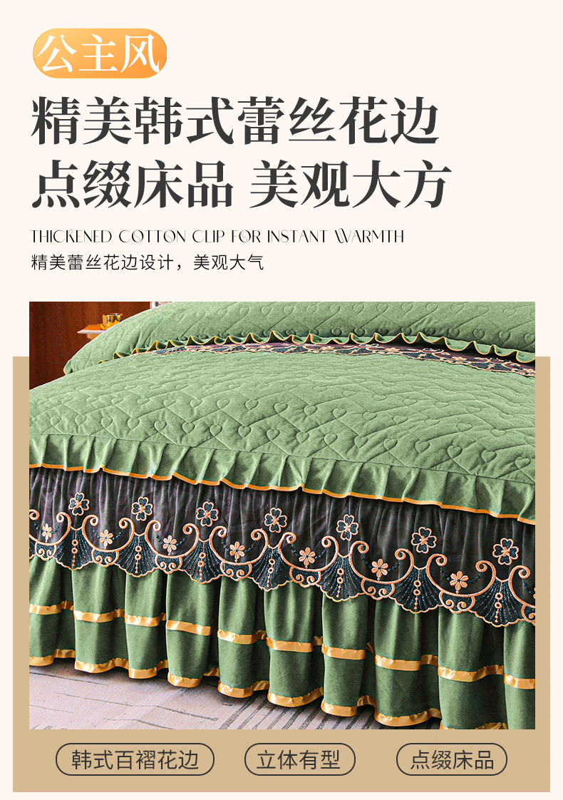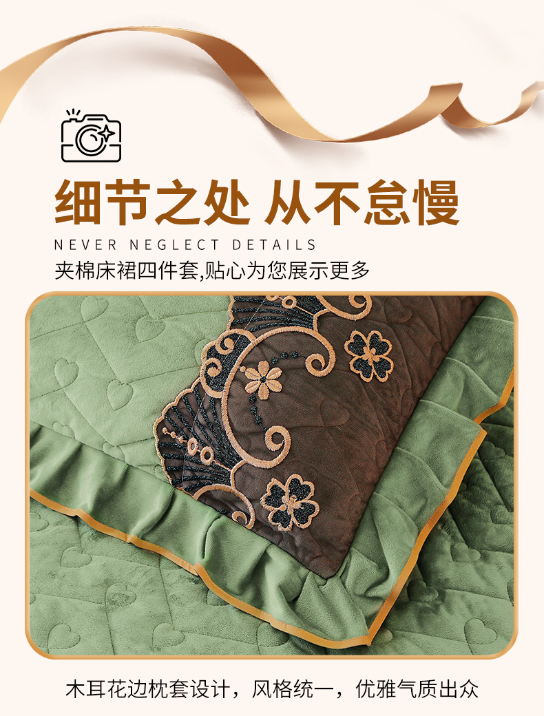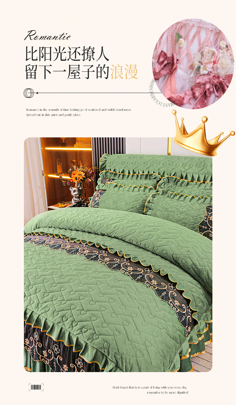 当前位置: 91家纺网 > 商品网购 > 床品套件 > 四件套 > 水晶绒四件套 > 新款心心相印蕾丝款水晶绒保暖床裙四件套 心心相印蕾丝款-橄榄绿