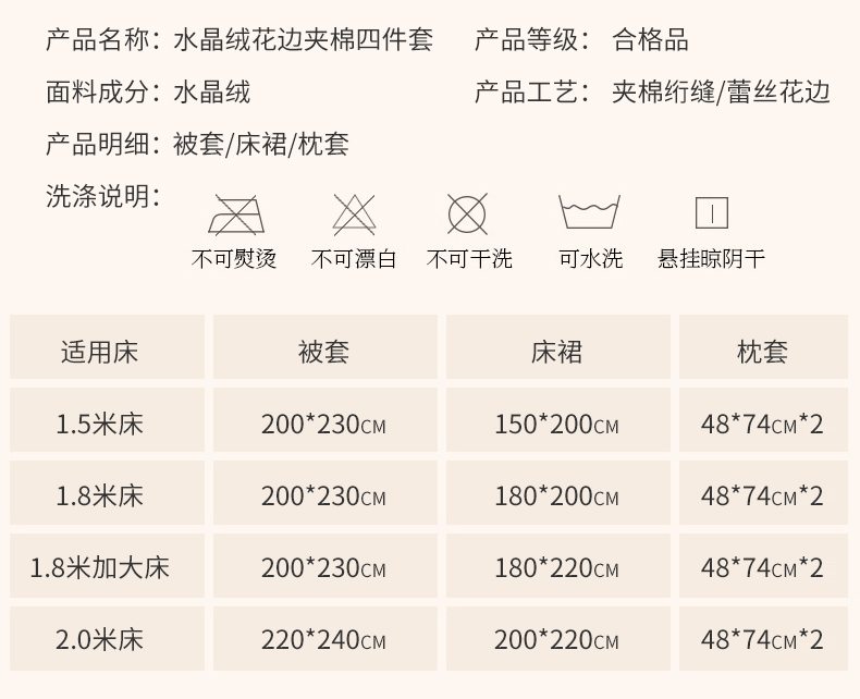 180*200cm被套220*240cm床裙款四件套 | ¥205.00 |