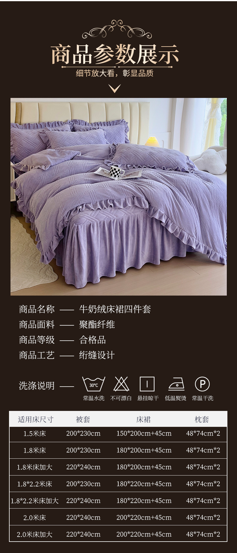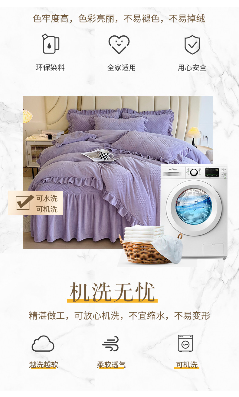 商品名称:(总)十个点家纺 2024新款牛奶绒床裙四件套-欣雅