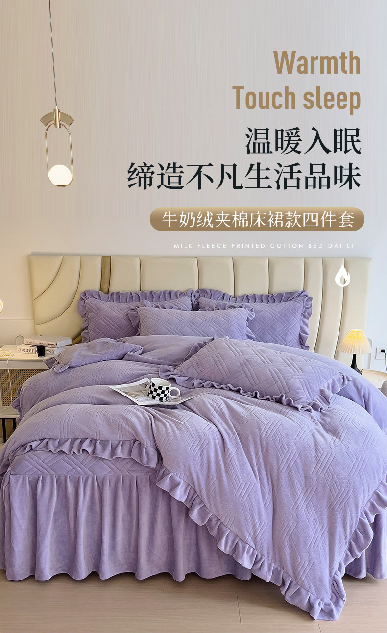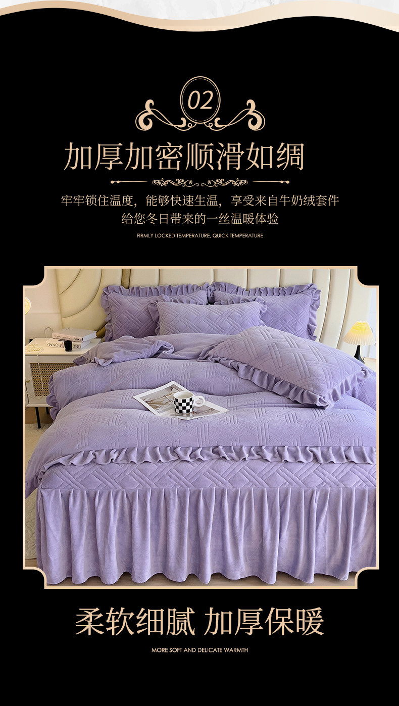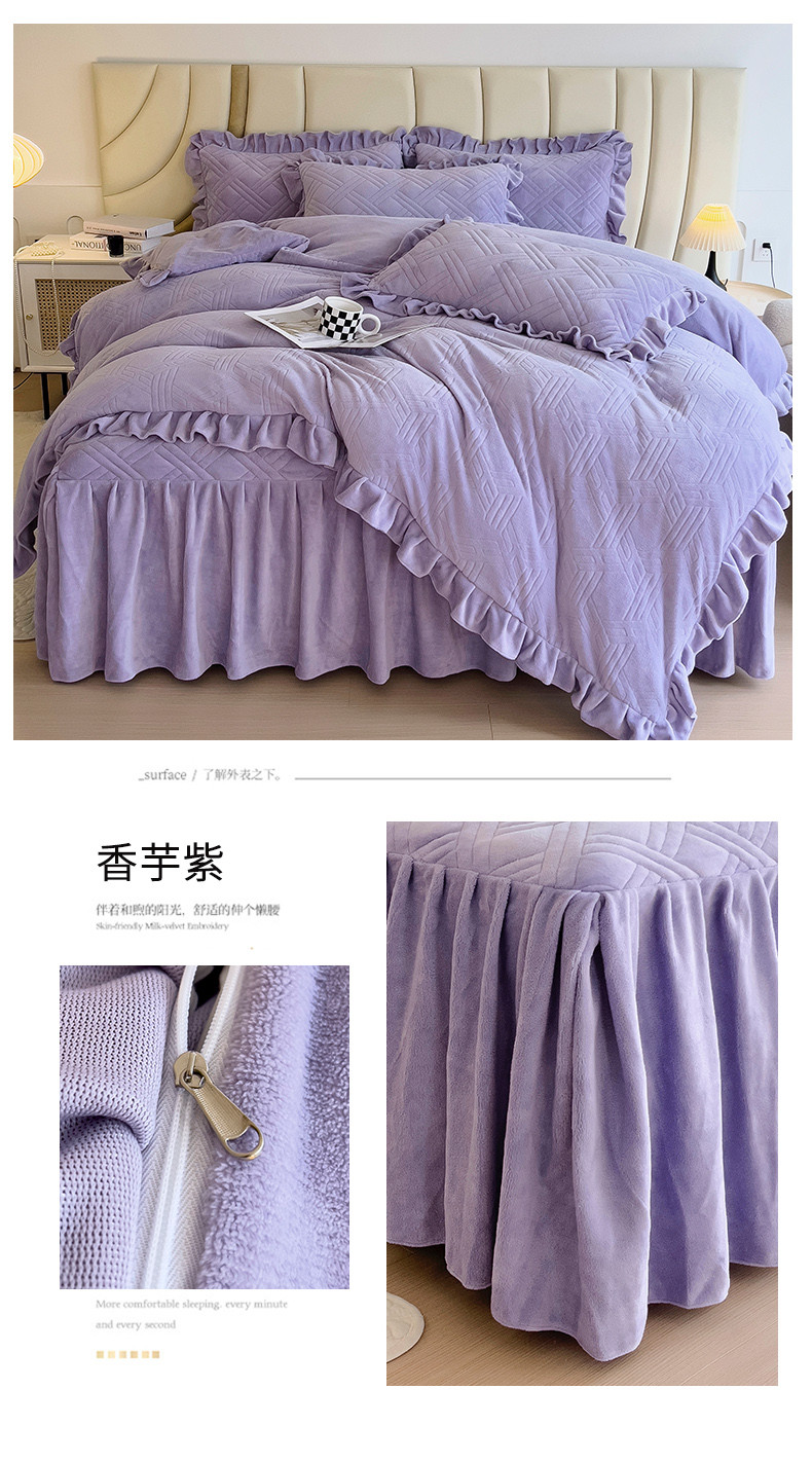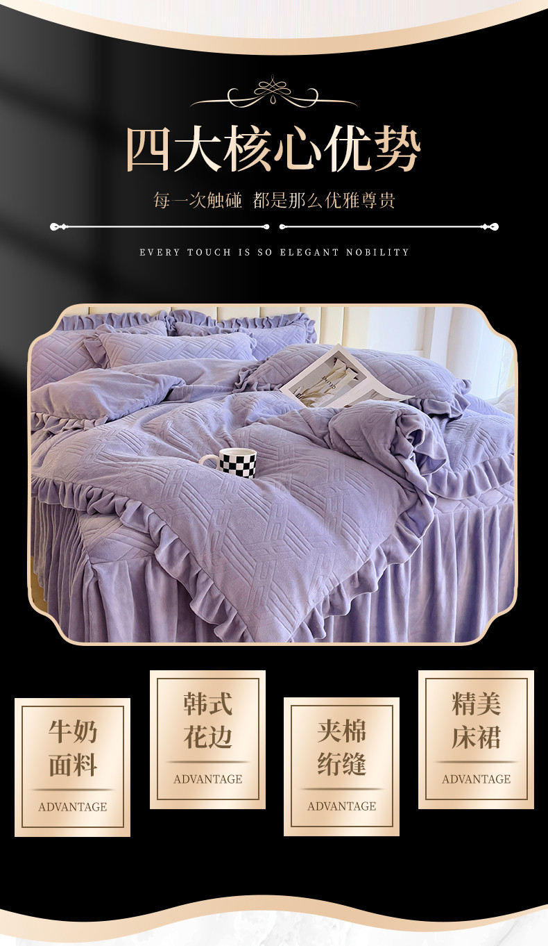 (总)十个点家纺 2024新款牛奶绒床裙四件套-欣雅