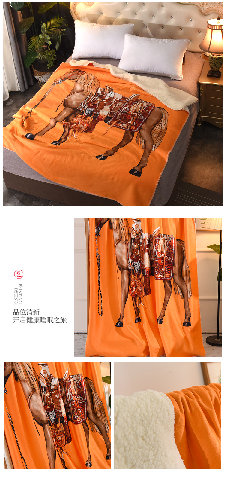 商品名称:爵仕家纺 2023新款羊羔绒毯宫廷风骏马系列 黄马