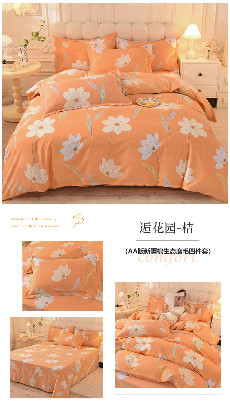 当前位置: 91家纺网 > 商品网购 > 床品套件 > 四件套 > 全棉普通四件套 > 巧玲珑 2023新款高支高密A版生态四件套 逅花园-桔