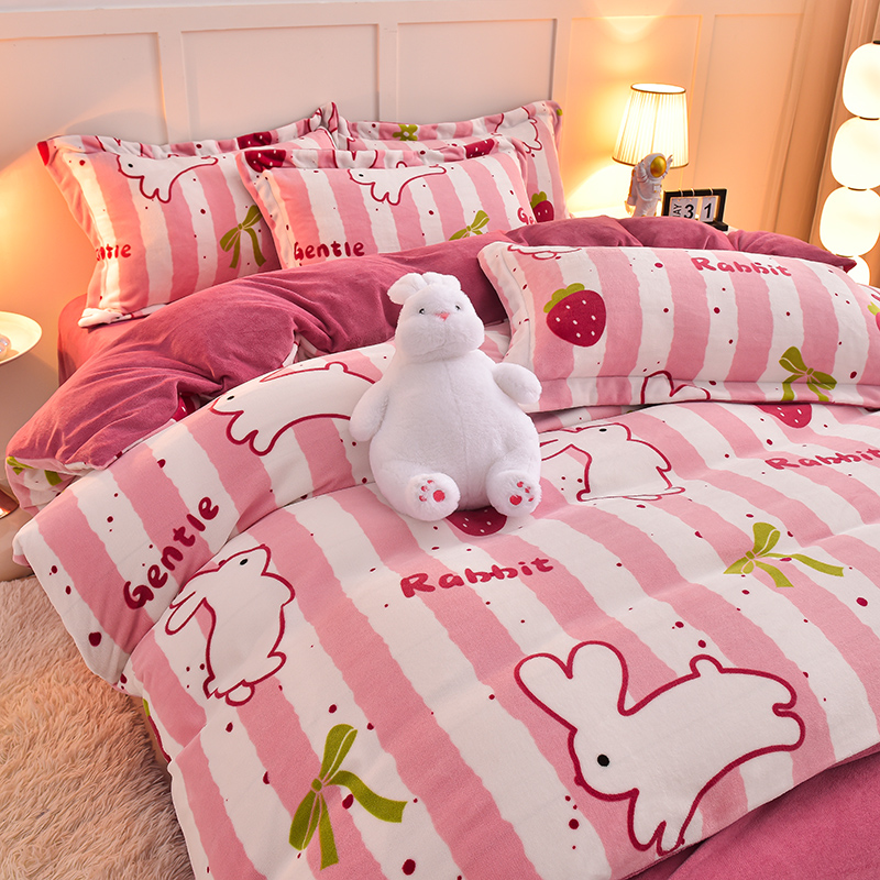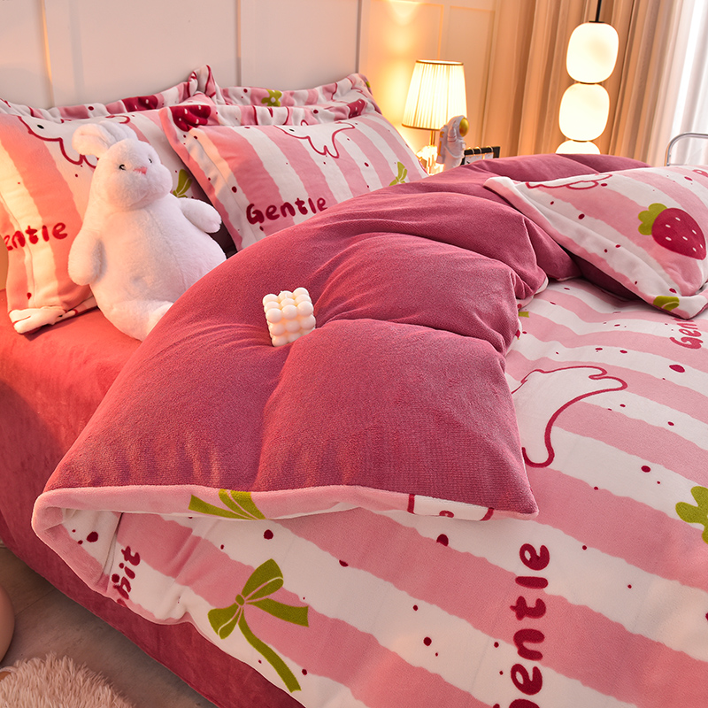 (总)简一 2025新款牛奶绒花边床盖四件套,磁带熊仔,浪漫花语,萌宠之家,梦幻蝴蝶结,派队乐园,水墨蝴蝶