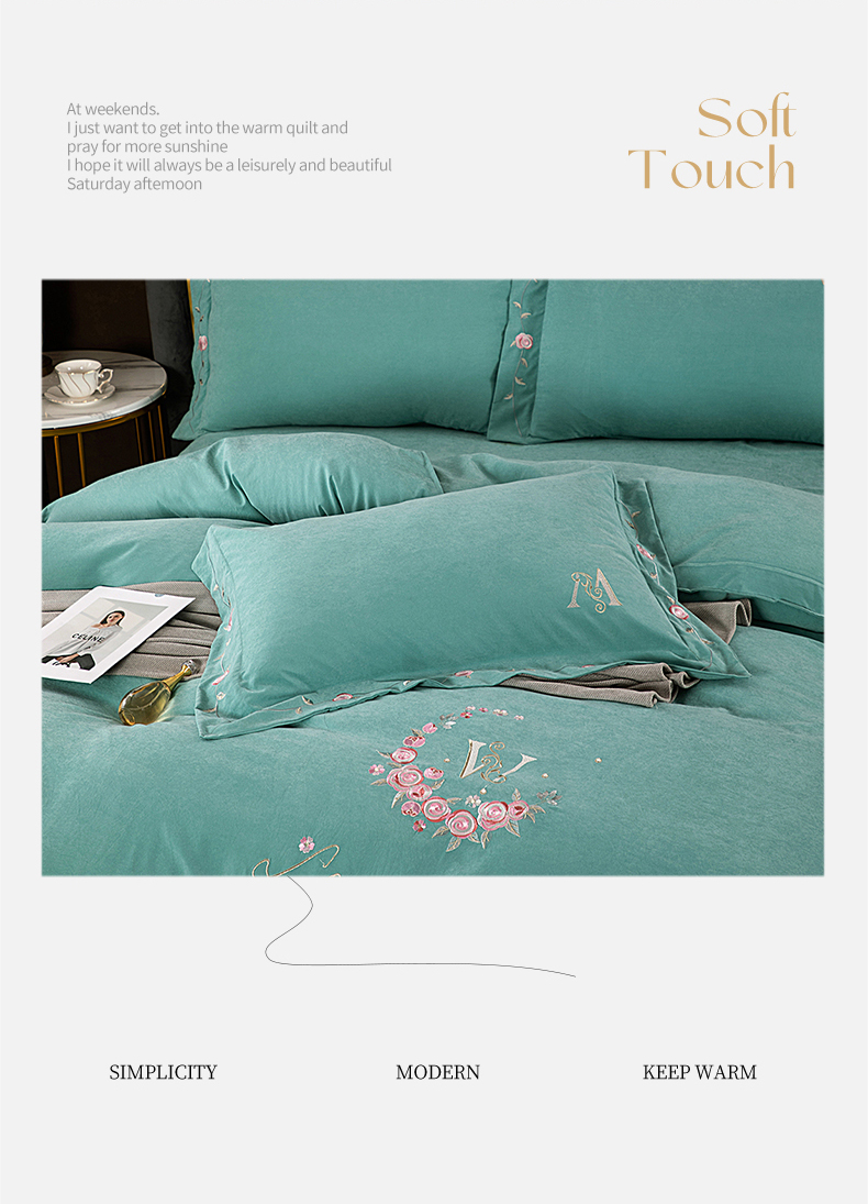 伊而梦 2023新款锦棉宽边绣花四件套--浪漫情缘 浪漫情缘-青碧色