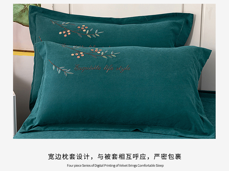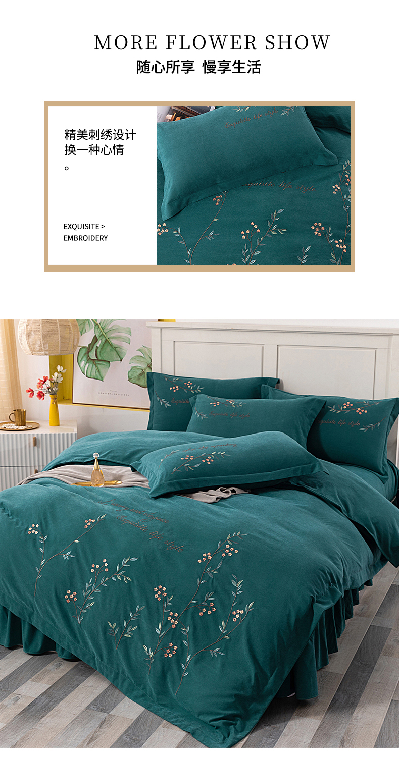 伊而梦 2023新款锦棉宽边绣花四件套--倚栏听风 倚栏听风-孔雀绿