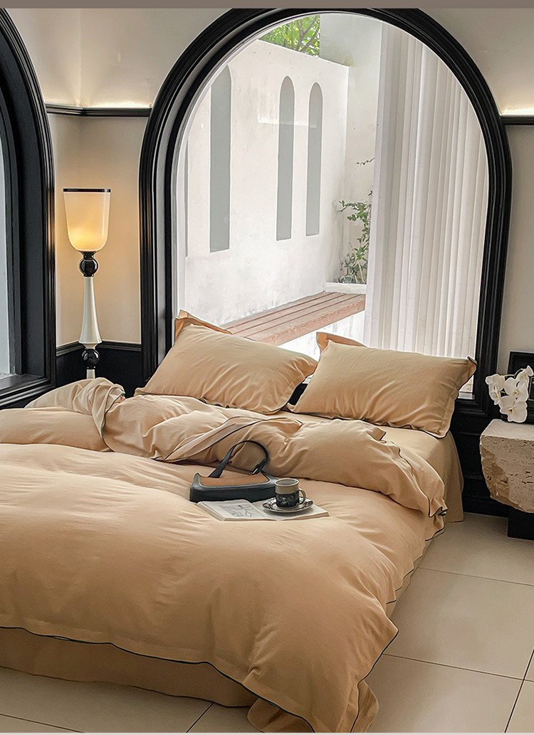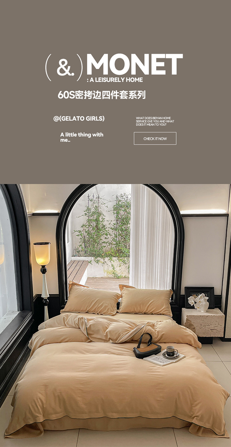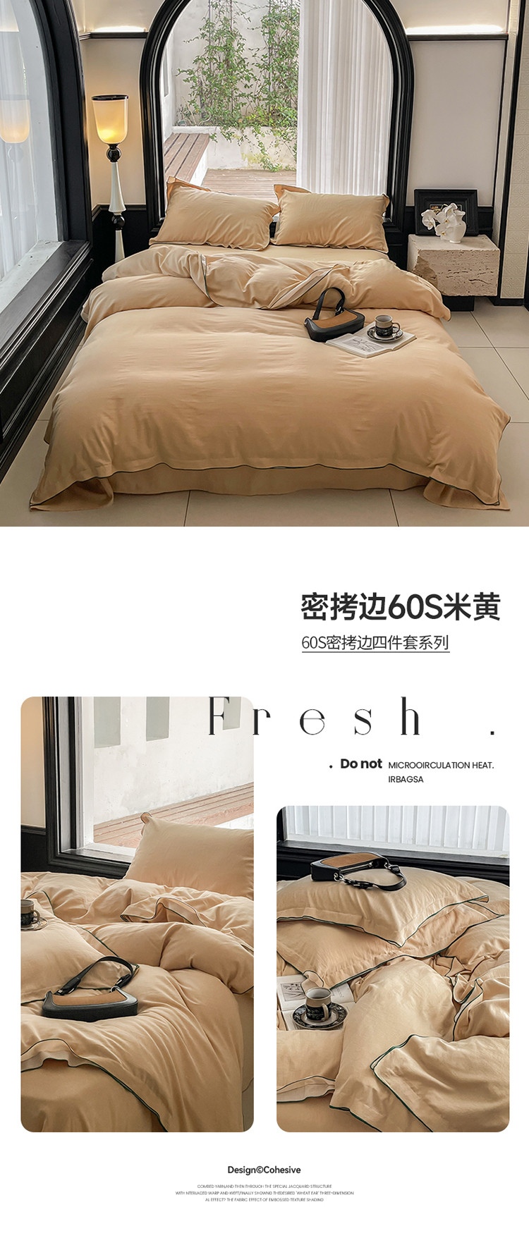华超针织 2024新款全棉亲肤60S密拷边四件套 密拷边60S米黄