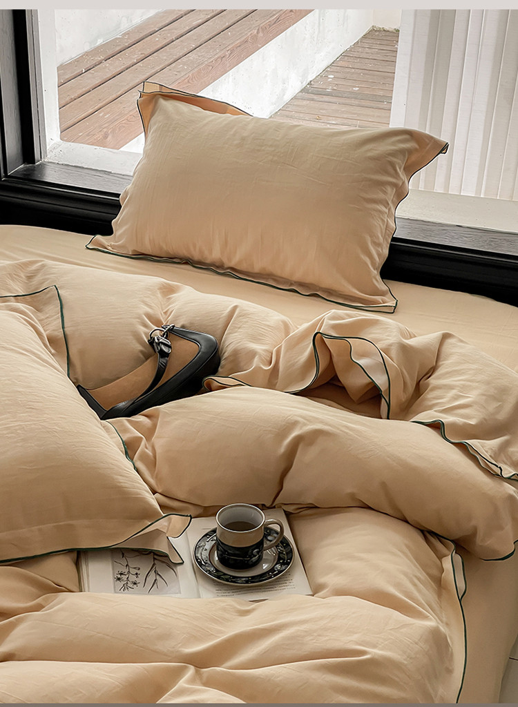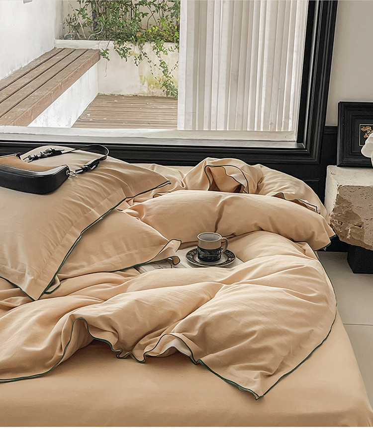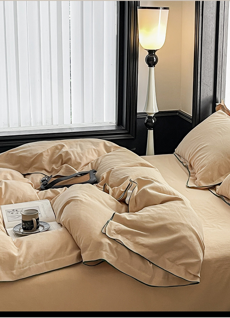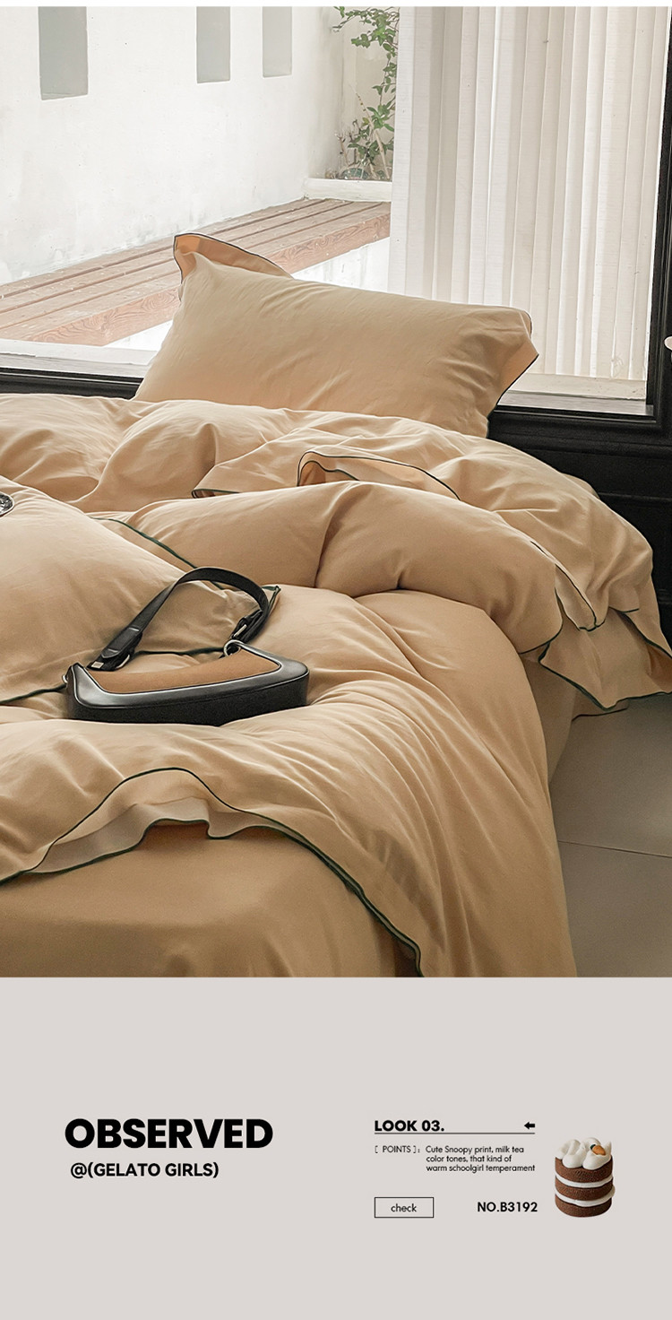 华超针织 2024新款全棉亲肤60S密拷边四件套 密拷边60S米黄