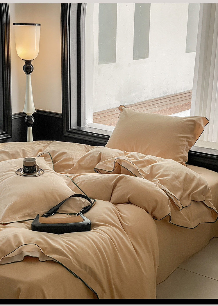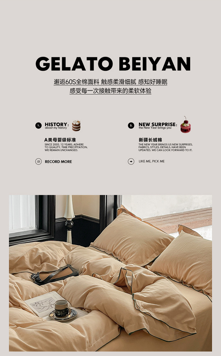 商品名称:华超针织 2024新款全棉亲肤60S密拷边四件套 密拷边60S米黄