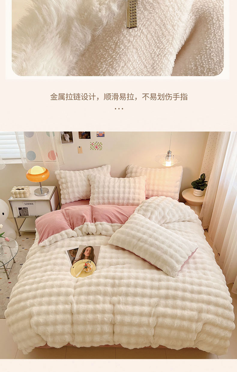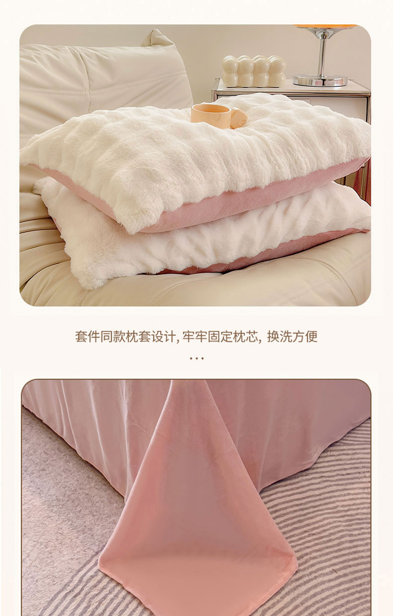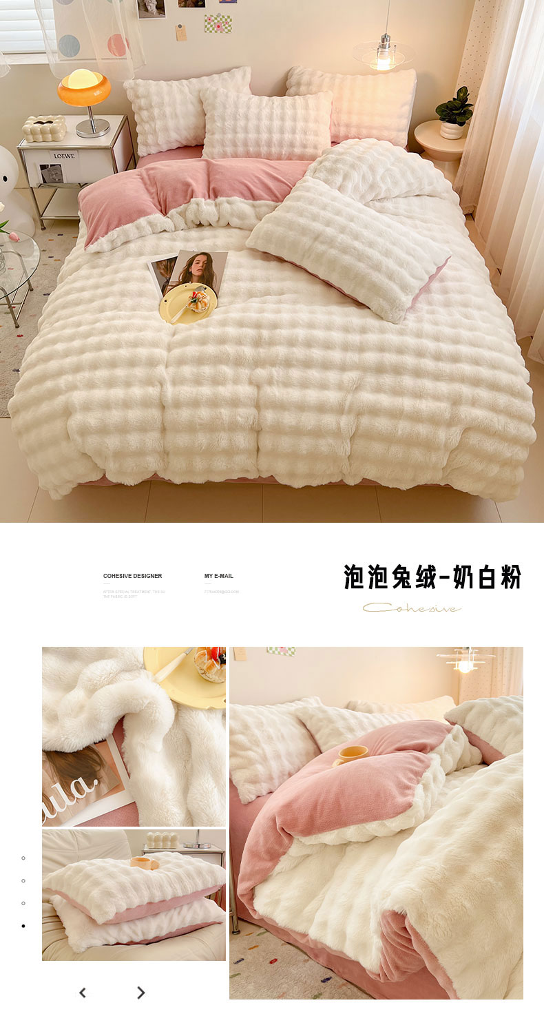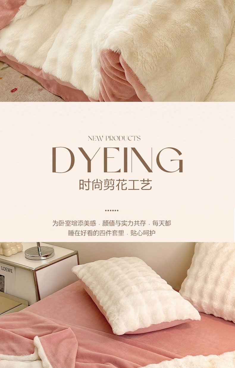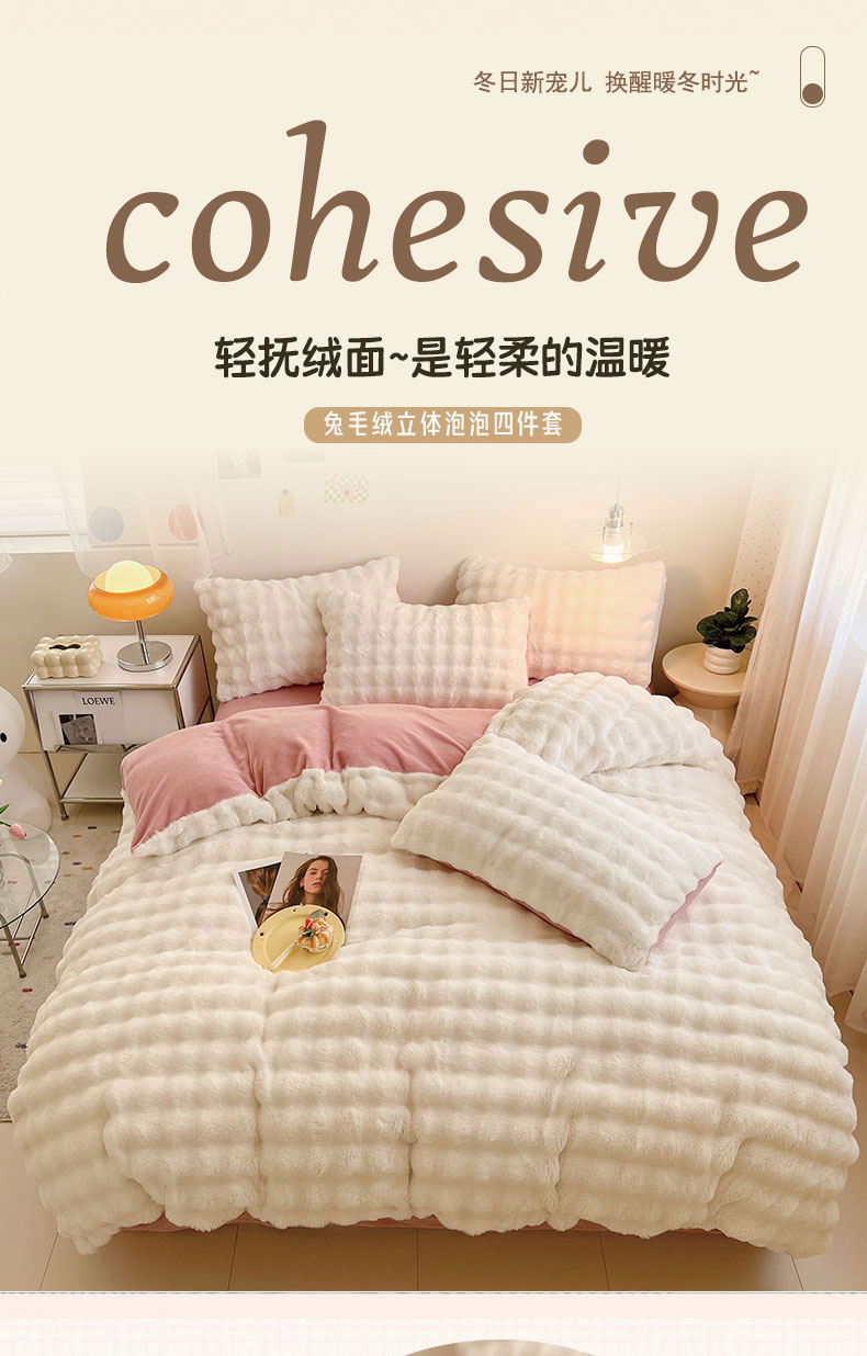 当前位置: 91家纺网 > 商品网购 > 床品套件 > 四件套 > 兔毛绒四件套 > 逸尚阁 2024新款兔毛立体泡泡四件套 奶白粉