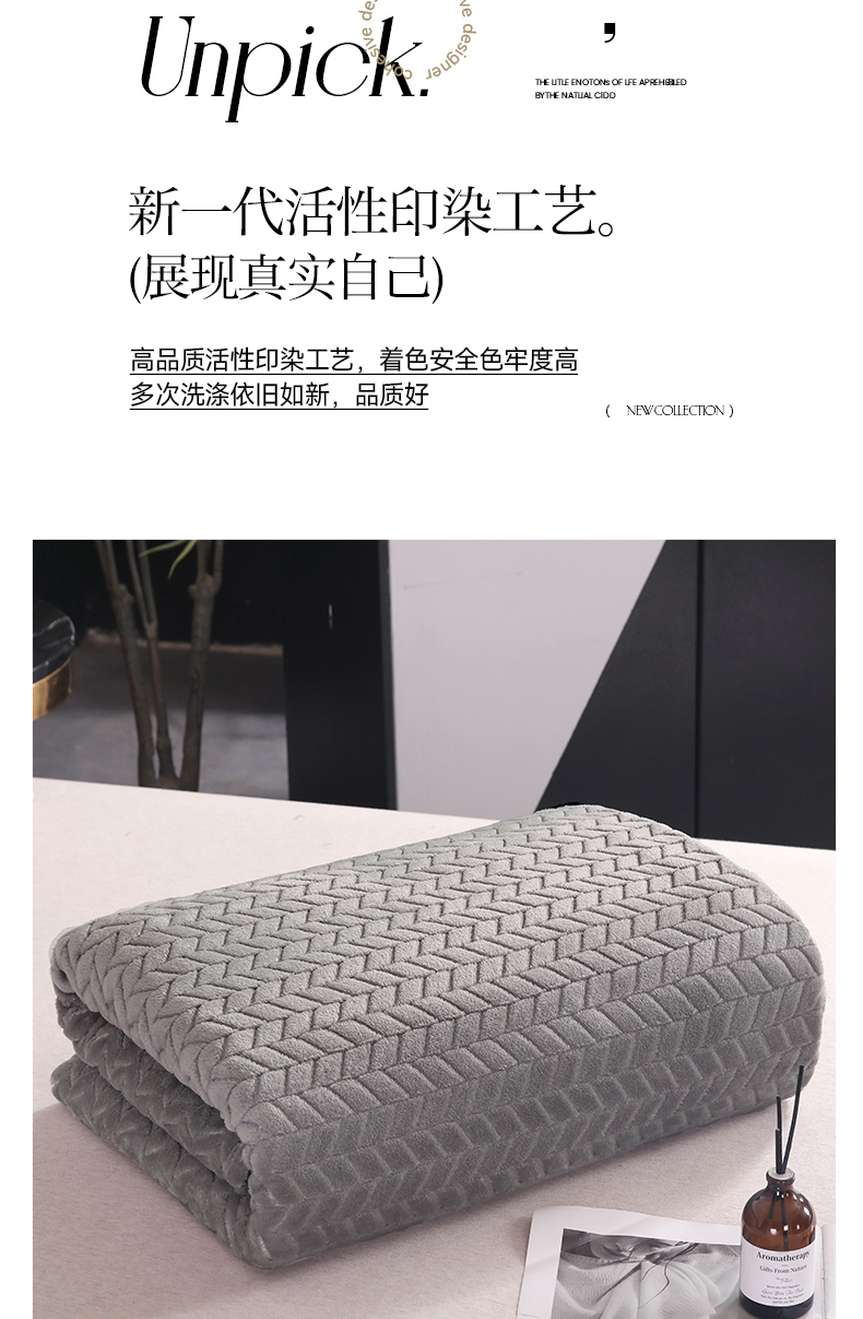 (总)新丽佳家纺 2023新款金龟绒法莱绒立体提花毛毯休闲毯办公小毯子,豆沙色,草绿,卡其,蓝灰,米白,柠檬黄,深灰,香芋紫