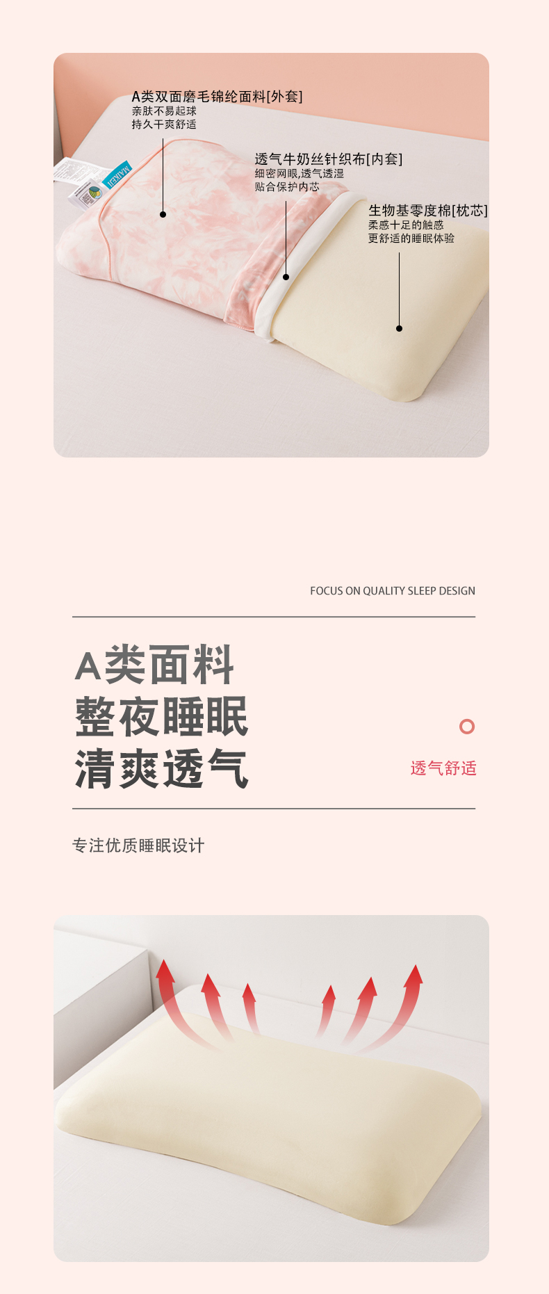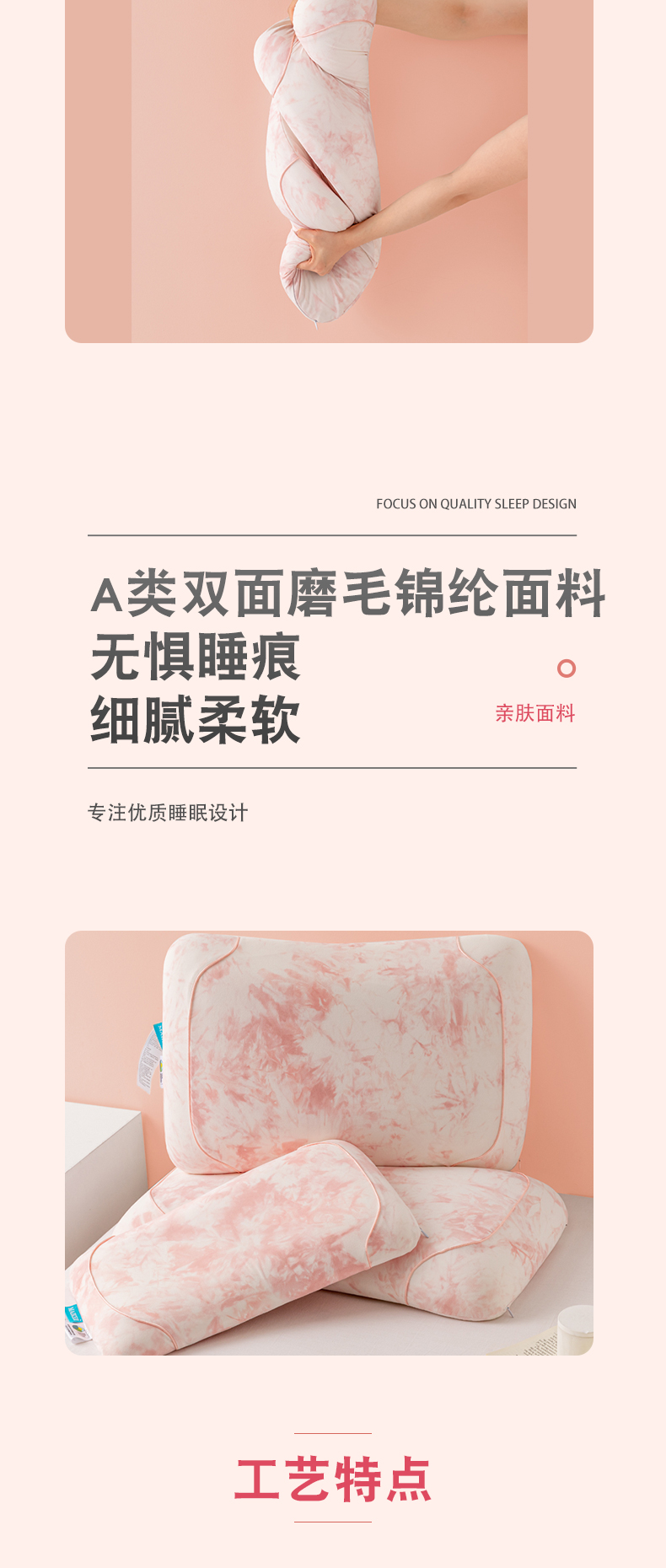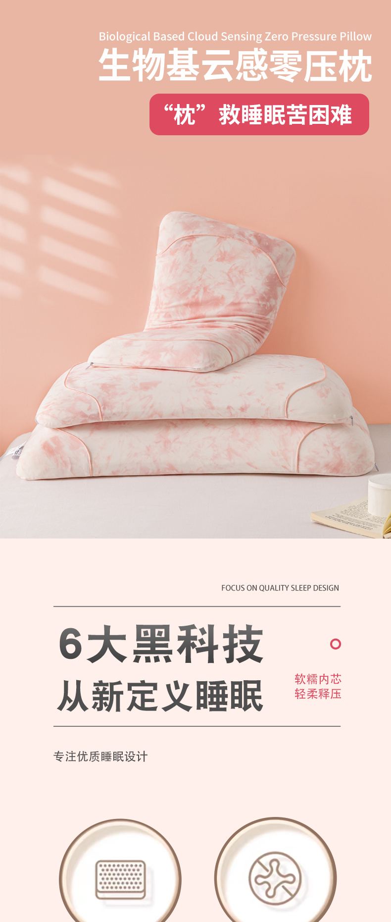 当前位置: 91家纺网 > 商品网购 > 枕头/枕芯/保健枕/颈椎枕 > 普通枕芯 > 帝诺妮枕芯坊 2024新款生物基云感零压枕 粉色男士款70*40*10cm/只