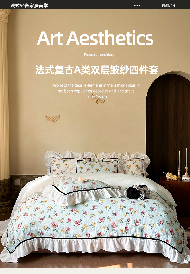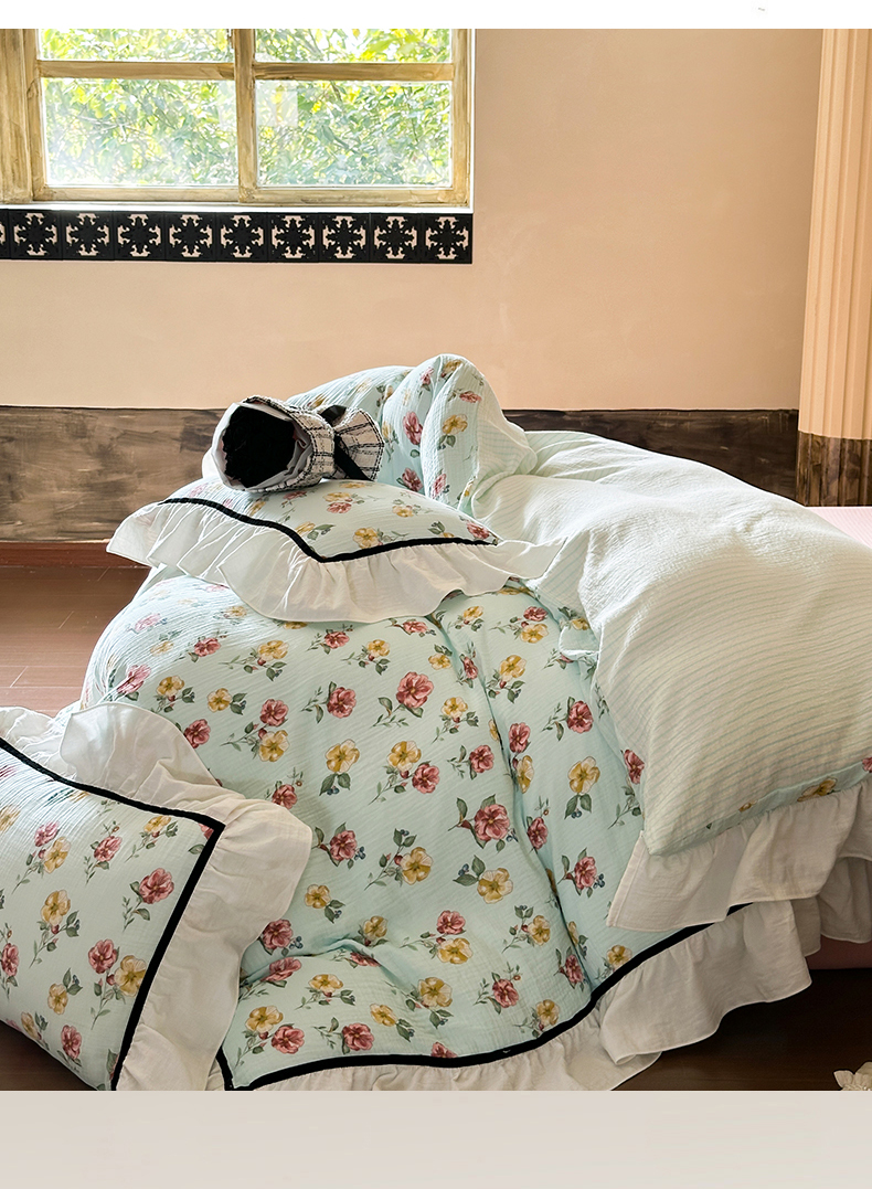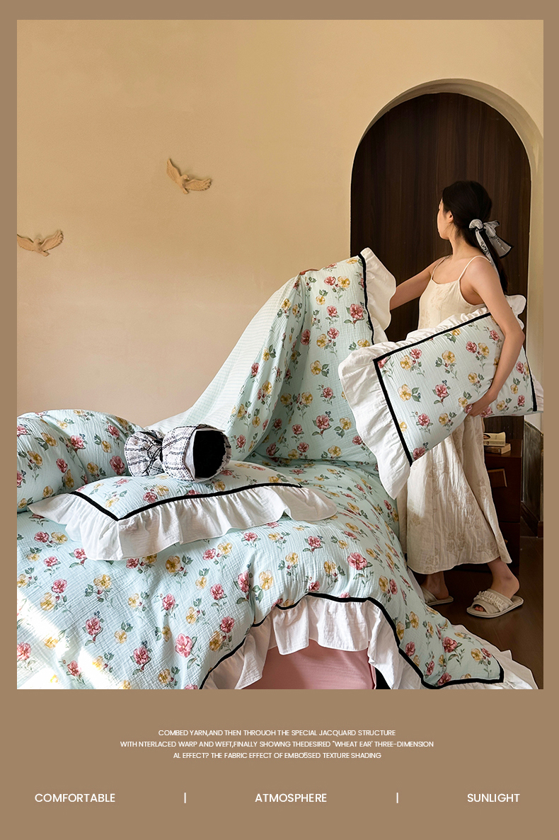 (总)玛奇朵 2025秋冬新品韩国色织A类三层皱皱纱系列四件套,山屿,时序,巷往
