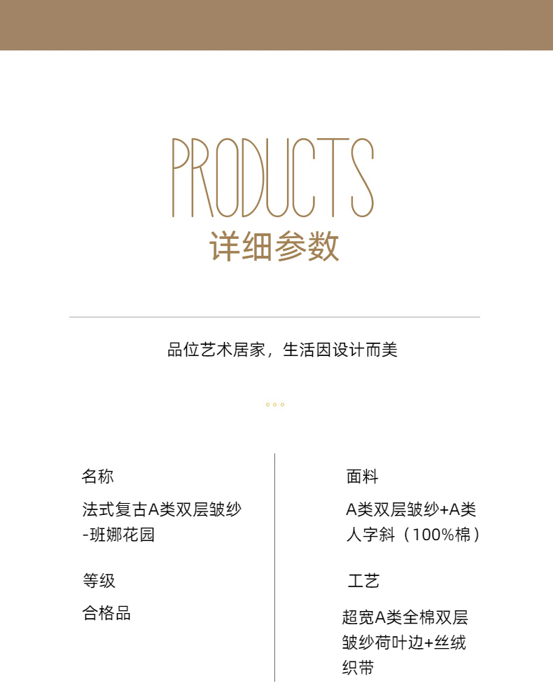 商品名称:玛奇朵 2024新款法式复古全棉A类双层皱纱-班娜花园 班娜花园-蓝