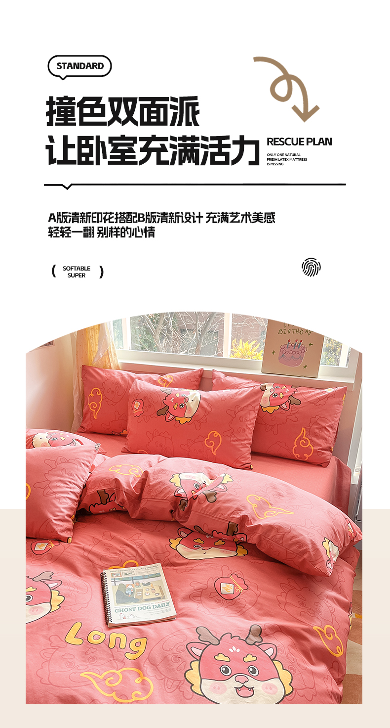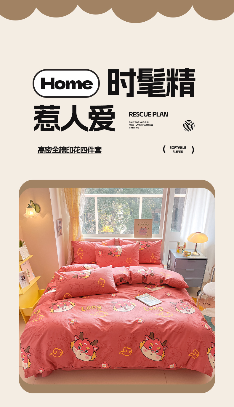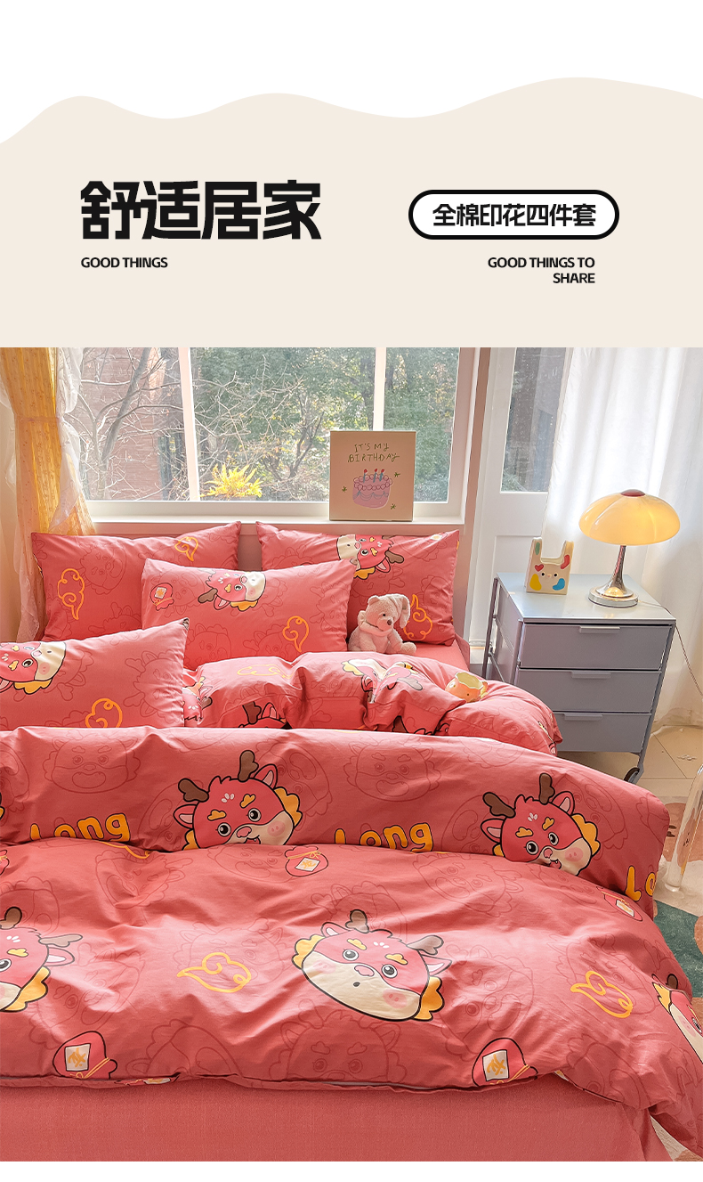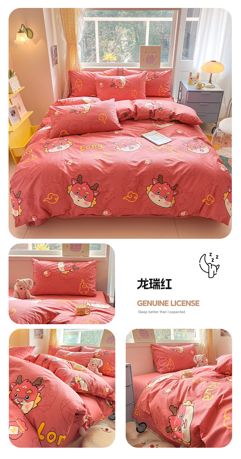雅居纺 2024新款高密全棉13070印花四件套 龙瑞红