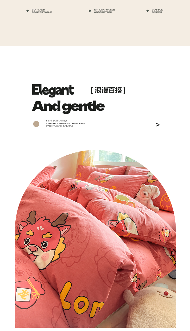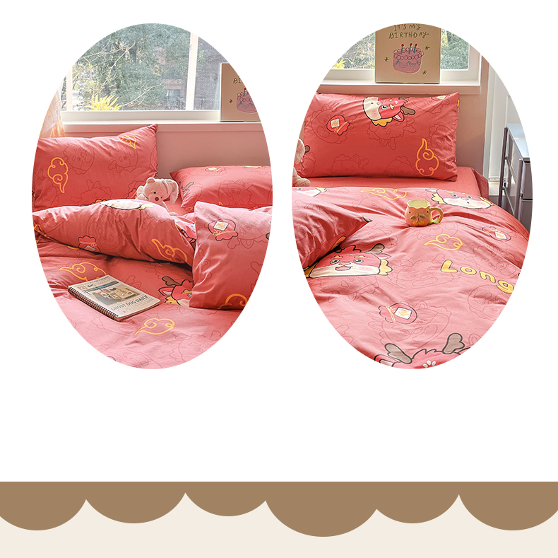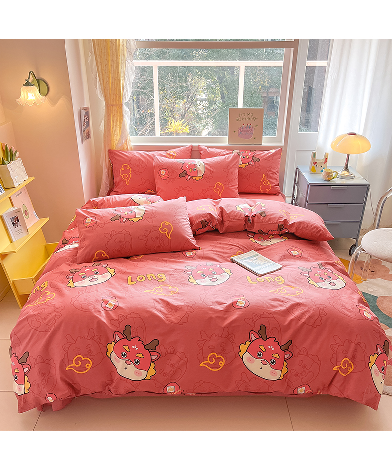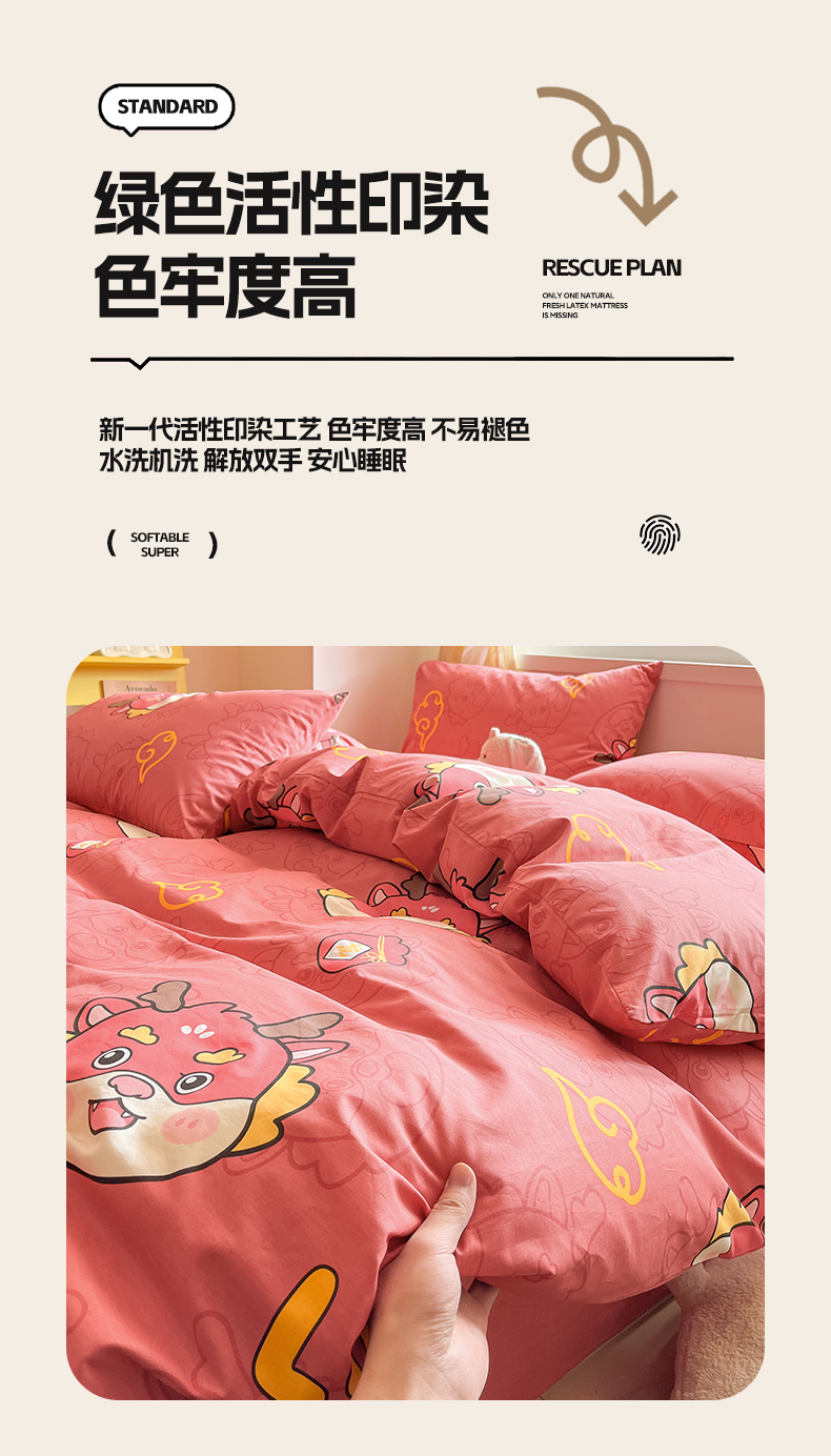 雅居纺 2024新款高密全棉13070印花四件套 龙瑞红