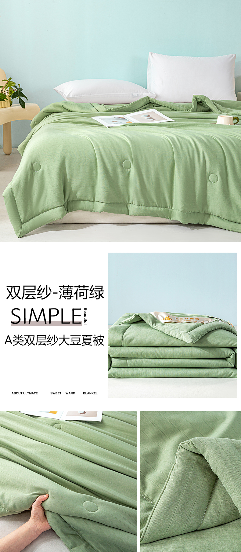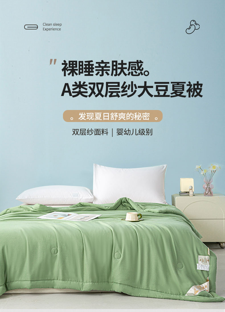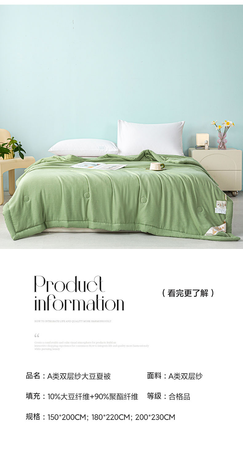 商品名称:森林人 2024新款A类双层纱大豆纤维夏凉被 双层纱-薄荷绿