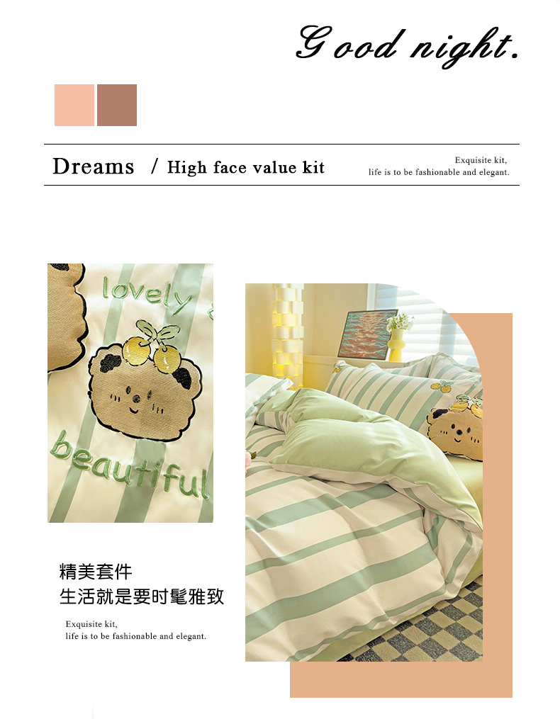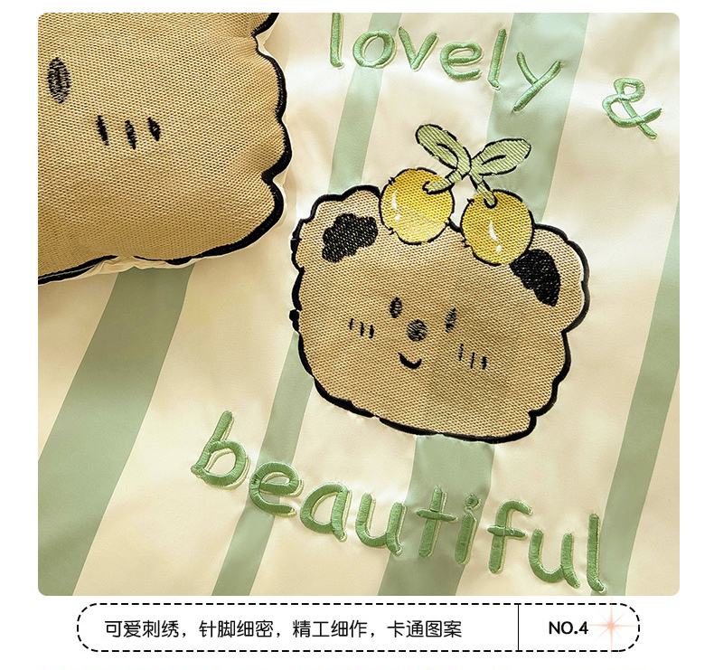 商品名称:娜娜 2024新款磨毛水洗棉刺绣四件套 樱桃小熊-绿