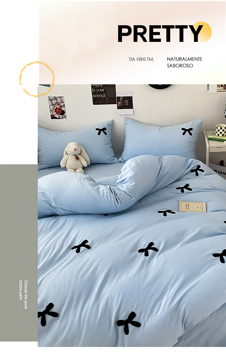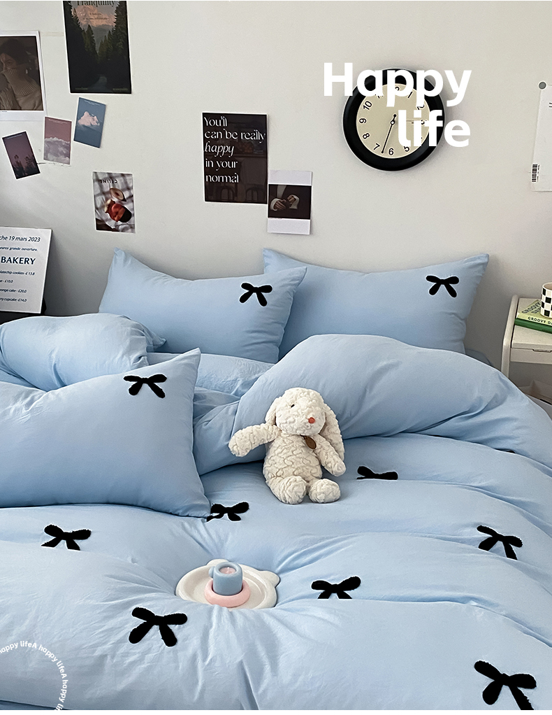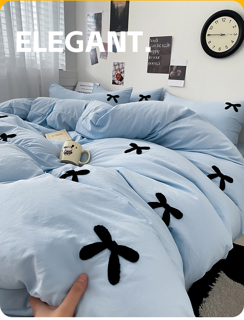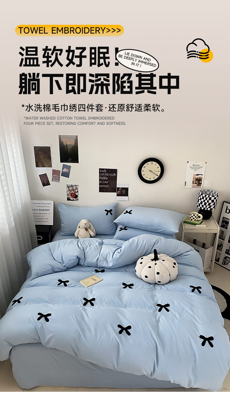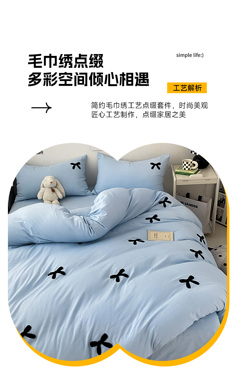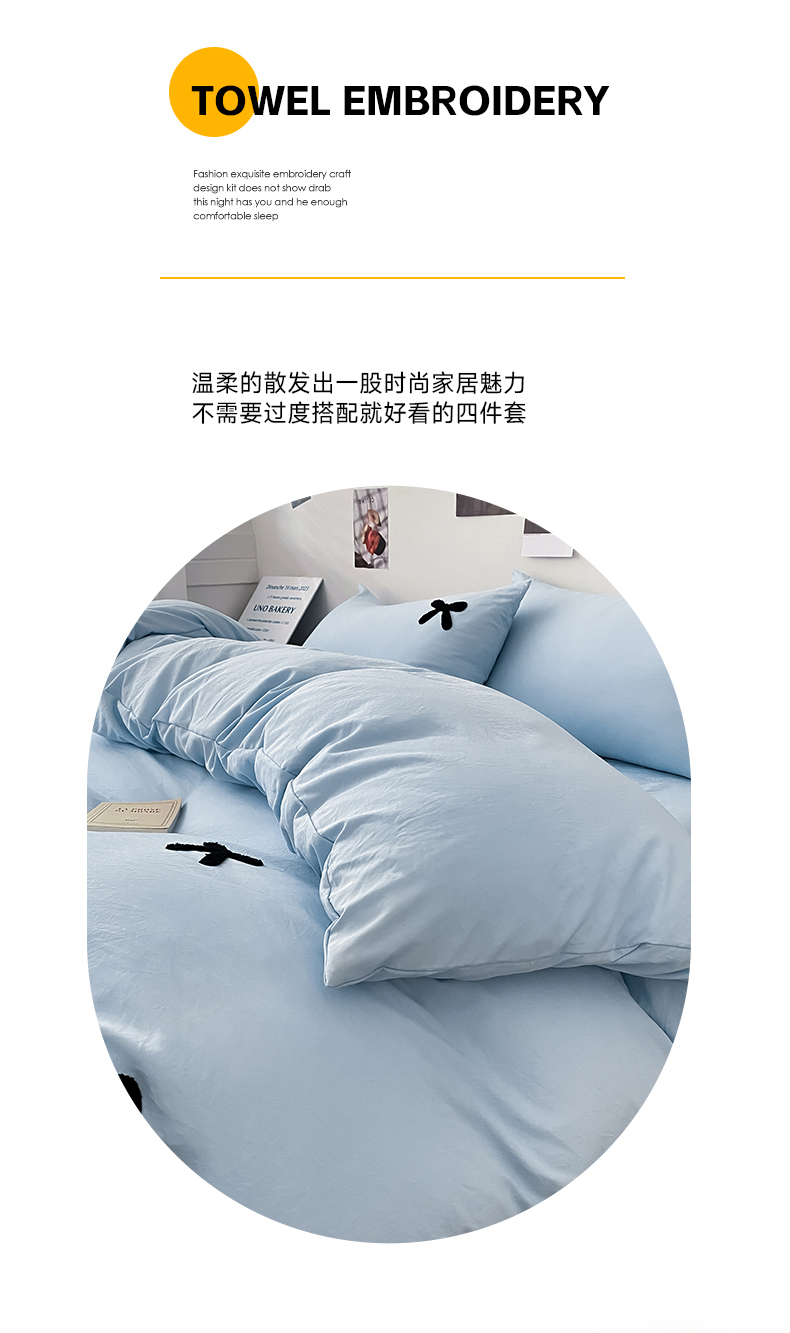 N先生 2025新款超柔水洗棉毛巾绣四件套极简风系列 蝴蝶结-蓝