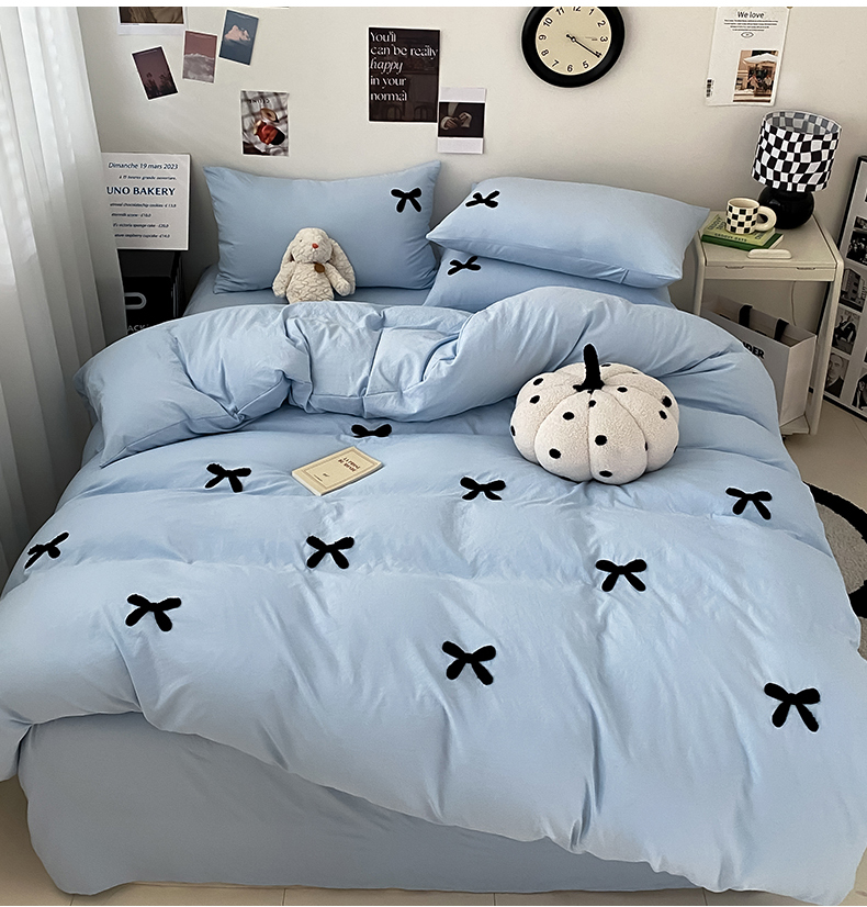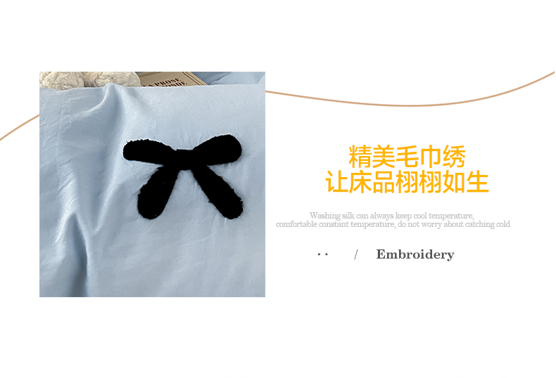 商品名称:N先生 2025新款超柔水洗棉毛巾绣四件套极简风系列 蝴蝶结-蓝